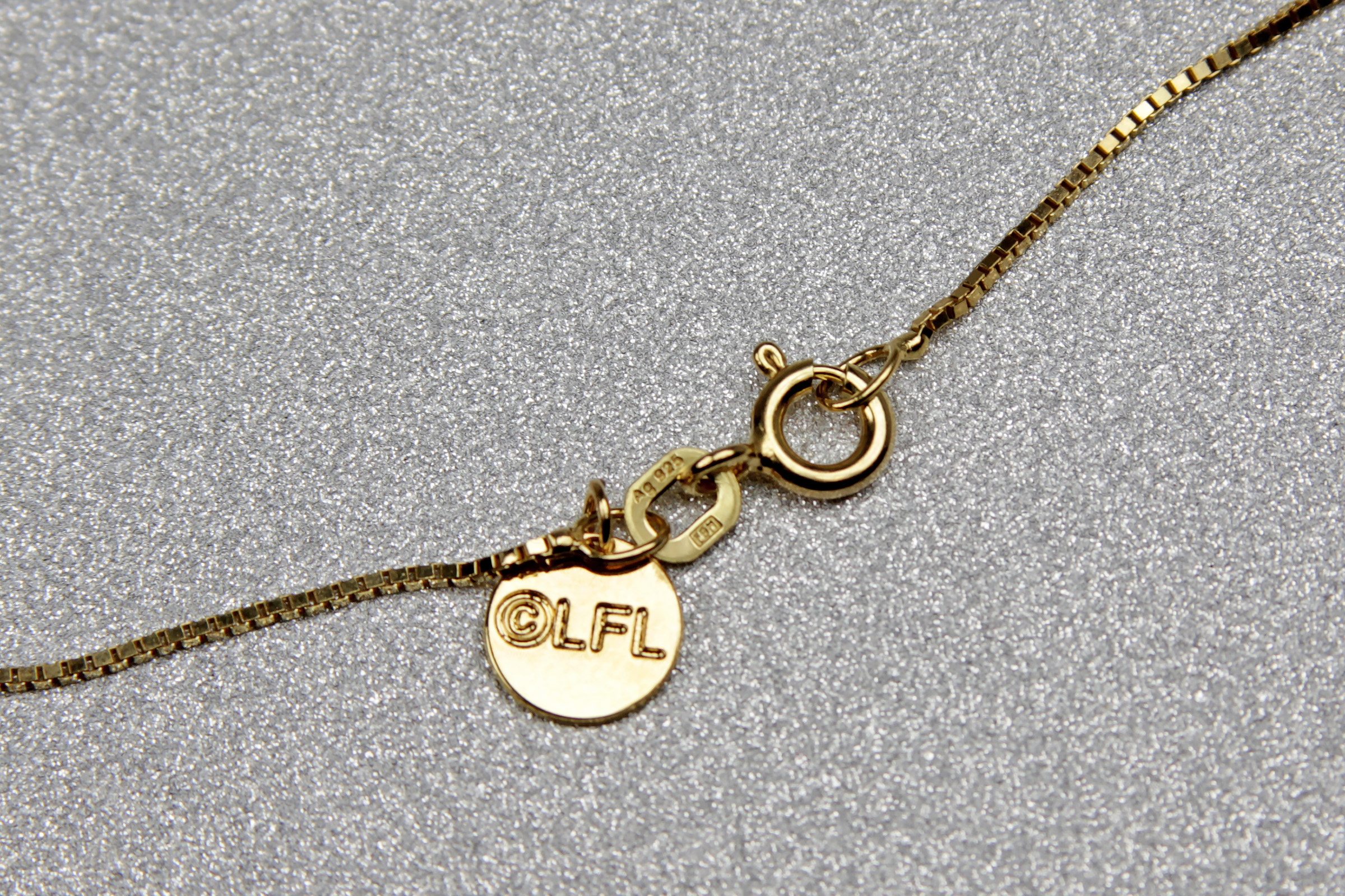 The necklace features a beautifully slender box-style chain, which is just the right size and weight to match the pendant. The chain measures approximately 45.5cm in length (including clasp).