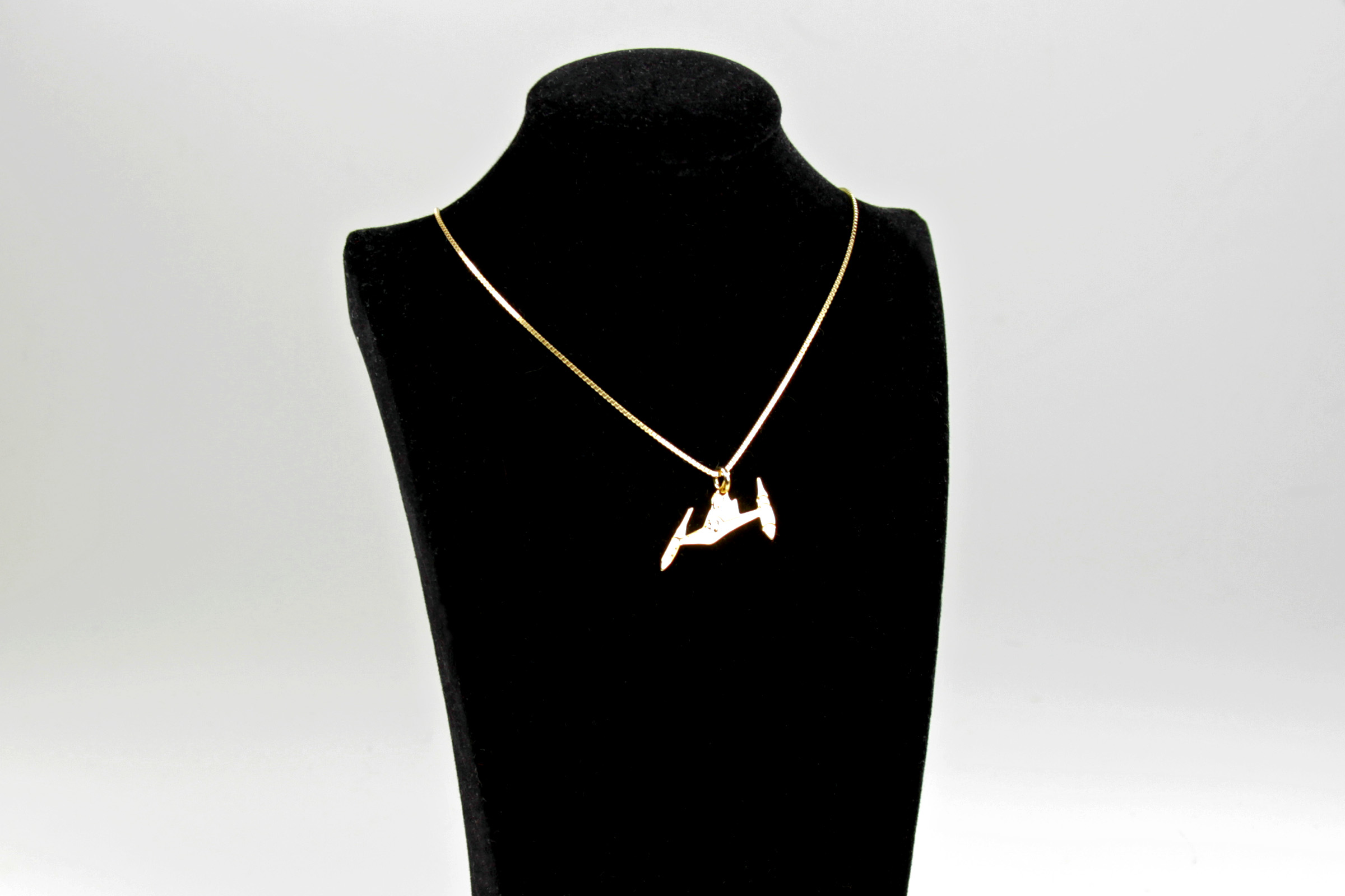 It’s always exciting to get your first in-person look at a jewelry item you have admired online for so long – it was really special to finally hold this necklace after a few years of waiting! The first thing that hit me was the stunning gold finish. I usually choose silver-toned jewelry, but gold is a perfect fit for the yellow N-1 starfighter design.