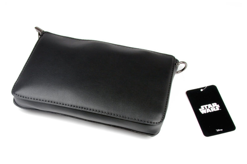 The back came packaged in a clear plastic bag, which noted the manufacterer information. I had guessed this bag was made by Bioworld – but it is in fact made by Concept One Accessories! This is a brand I haven’t come across much, except for the Rey hooded scarf and Stormtrooper tote bag. Inside, the purse was filled with plain paper to help maintain the bag shape, and the shoulder strap was also stored inside.
