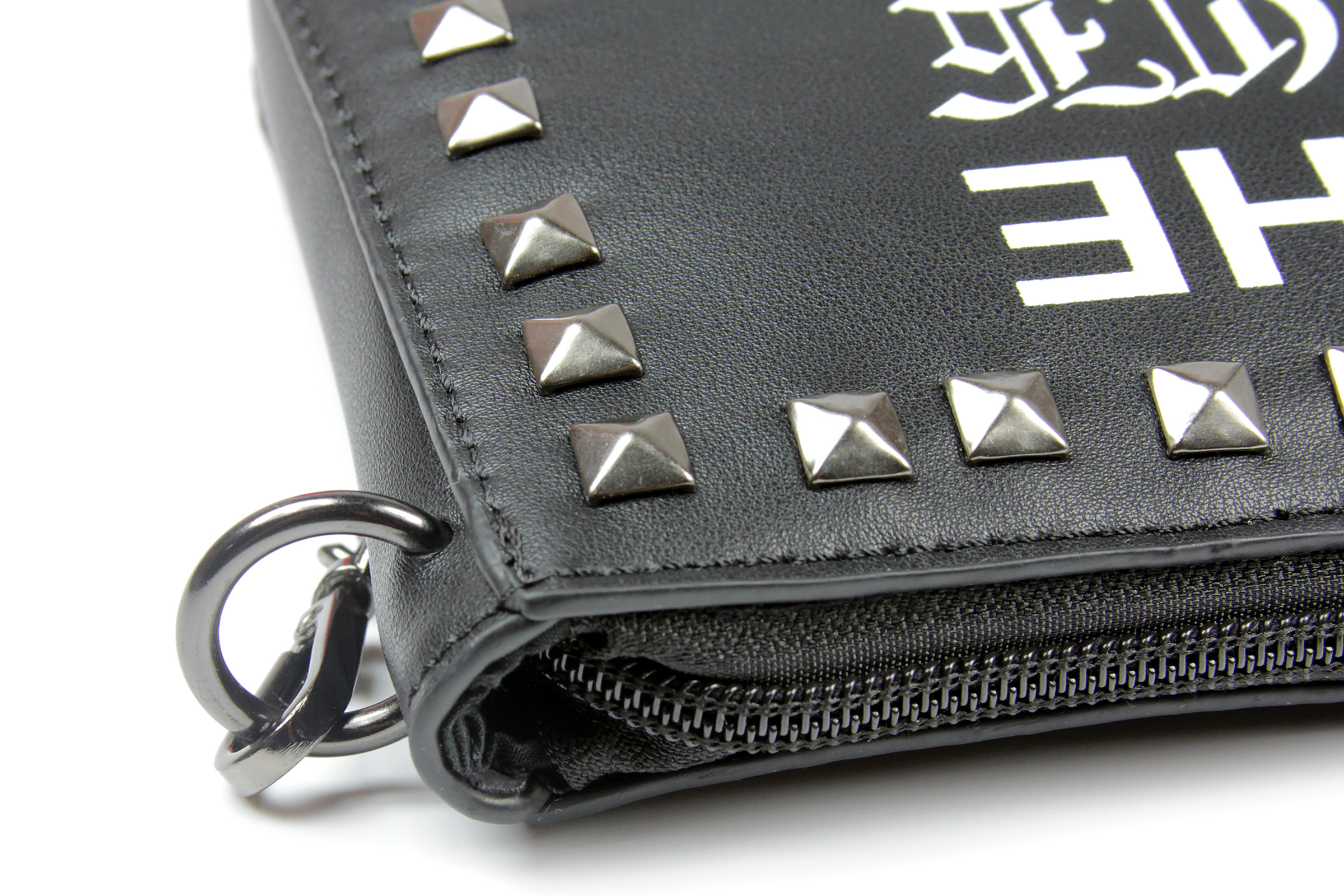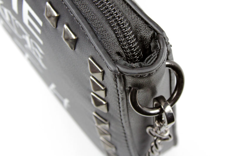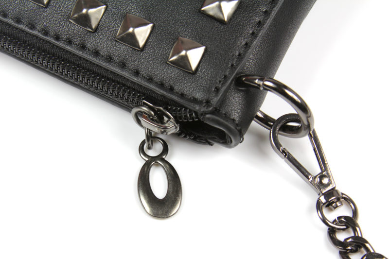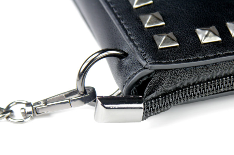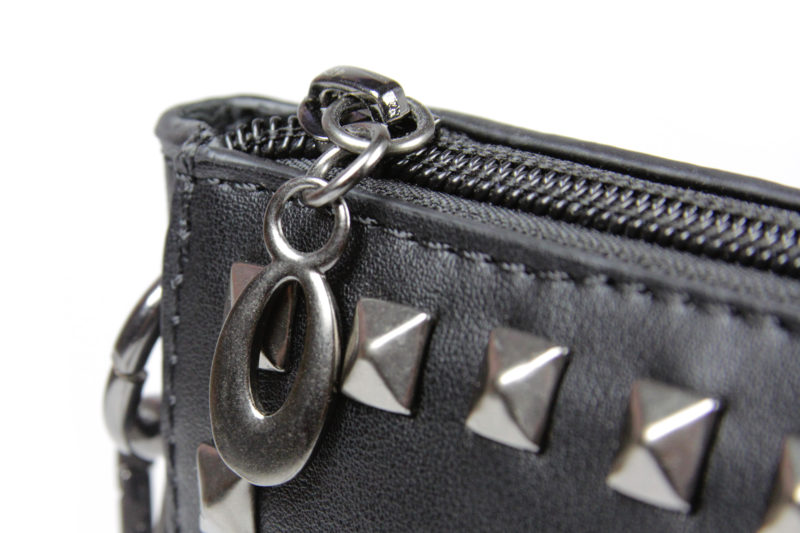 The studs are not spaced perfectly – at first glance, the lines/rows are even, but when you look closer, the line isn’t completely straight and the spacing between the studs varies a little. This again is another touch of punk style – perfect alignment wouldn’t suit the aesthetic. The studs are tidy enough so as not to be distracting, but varied enough to look like they were done by hand. I like the effect – like you took a plain black purse and customised it.