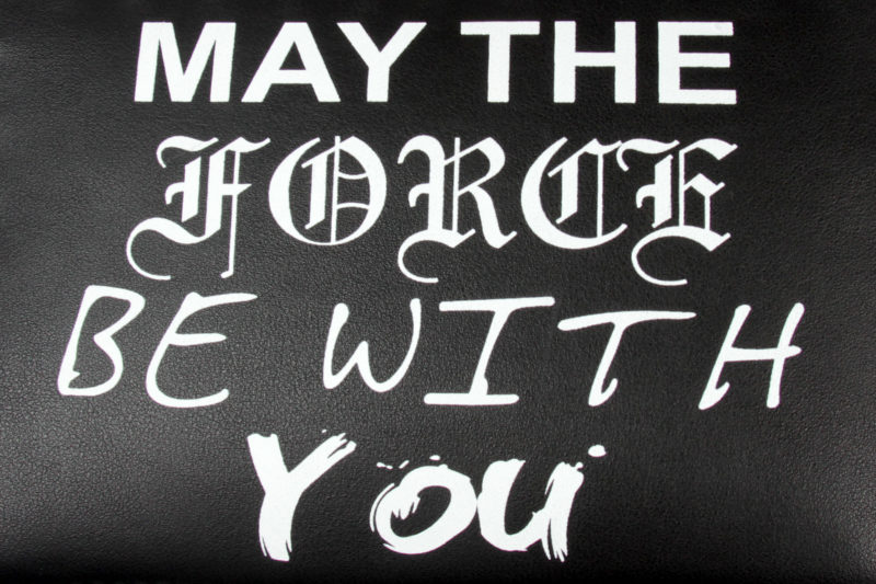 The font used for the word ‘Force’ is the most decorative, but also a little harder to read – the ‘C’ and ‘E’ letters in particular. Most fans will recognise the quote instantly, so it doesn’t really bother me. It reminds me of those reading challenges where letters are replaced with numbers and your mind fills in the gaps automatically. M4y t4e F8rc3 8e W17h Y02!