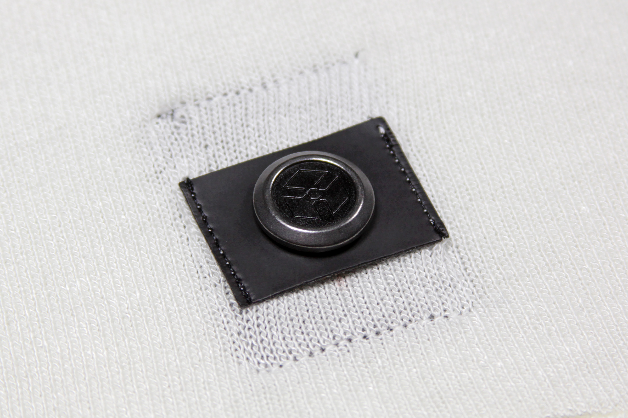 The badge is made from silicone, with a raised design. The Rebel ‘starbird’ symbol is very crisp, even down to the fine points. The badge is sewn onto the sweater, stitched with colour matched grey thread, in a recessed rim around the edge. This is a design element Musterbrand has used before – their Rey sweater also features this badge, in a matching beige colour.