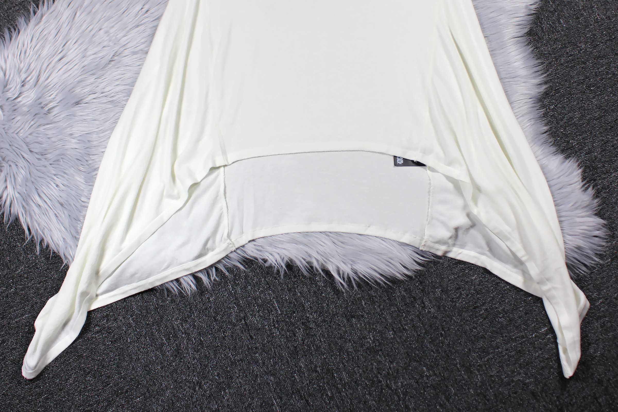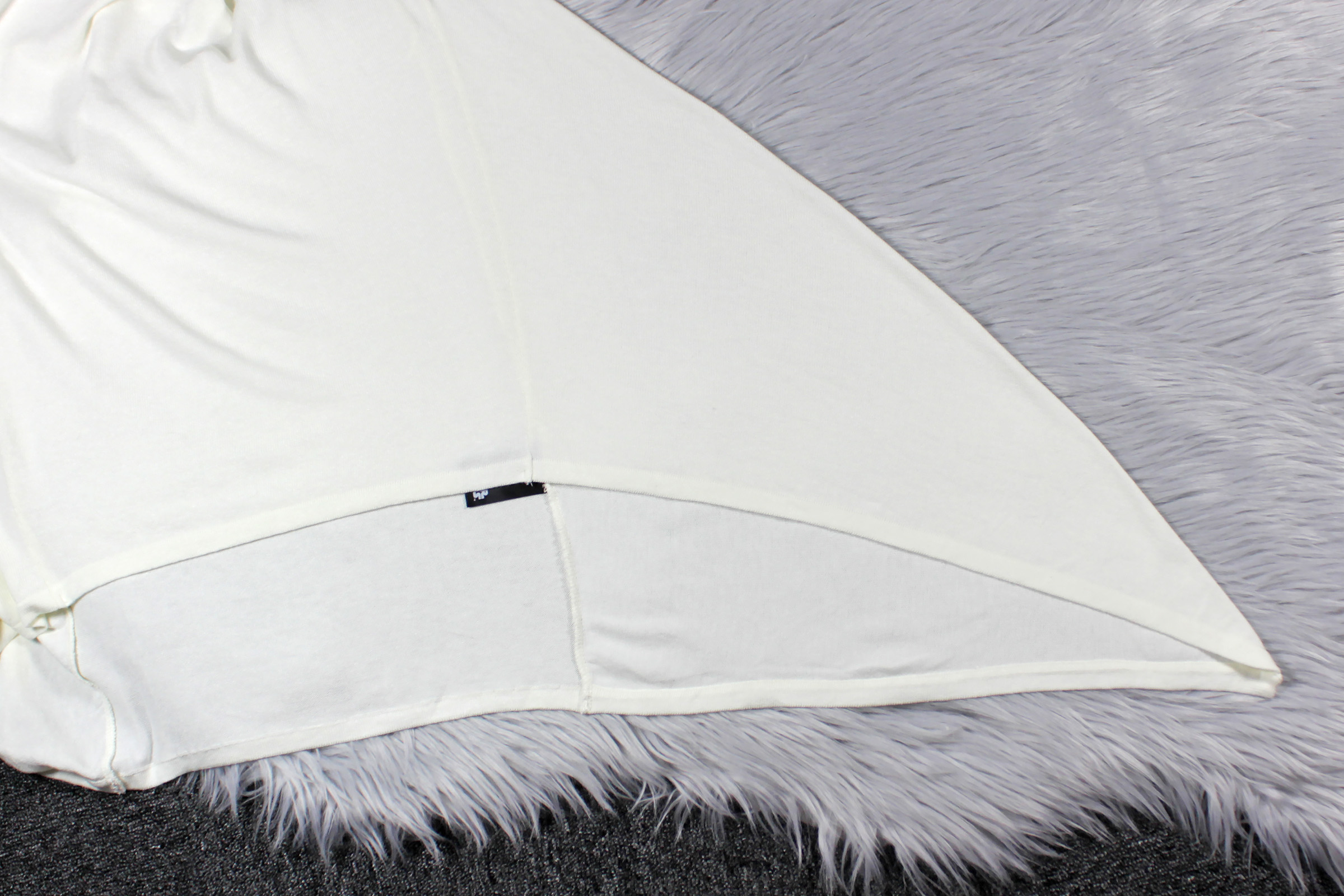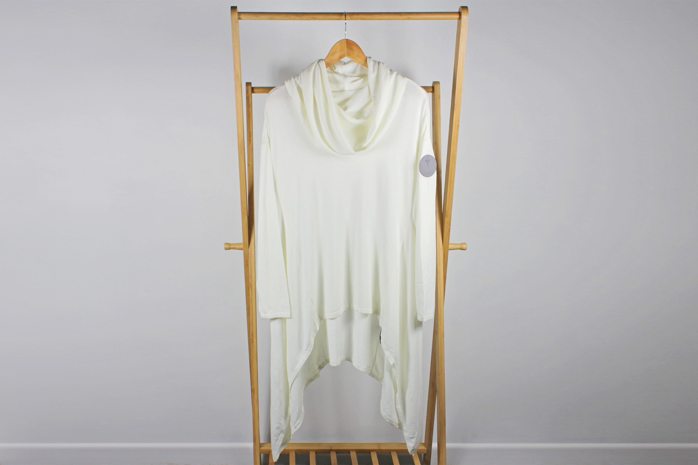 The fabric of this sweater is so lovely and soft – I just keep thinking to myself ‘buttery soft’ when holding it. It is not a true stark white, it has a cream tone to it, which is a softer colour, and perhaps a little more flattering for a large draped sweater.
