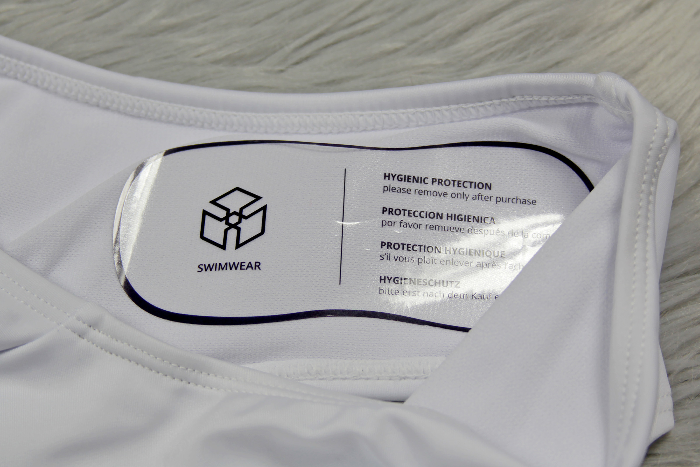 As this is a garment worn against the body, the swimwear comes with a hygienic protection sticker in the crotch. This clear sticker features the Musterbrand logo, and a note about removal in four different languages. This sticker is easy to remove, and doesn’t damage the lining fabric (unlike some garment stickers I have come across! Arg..).