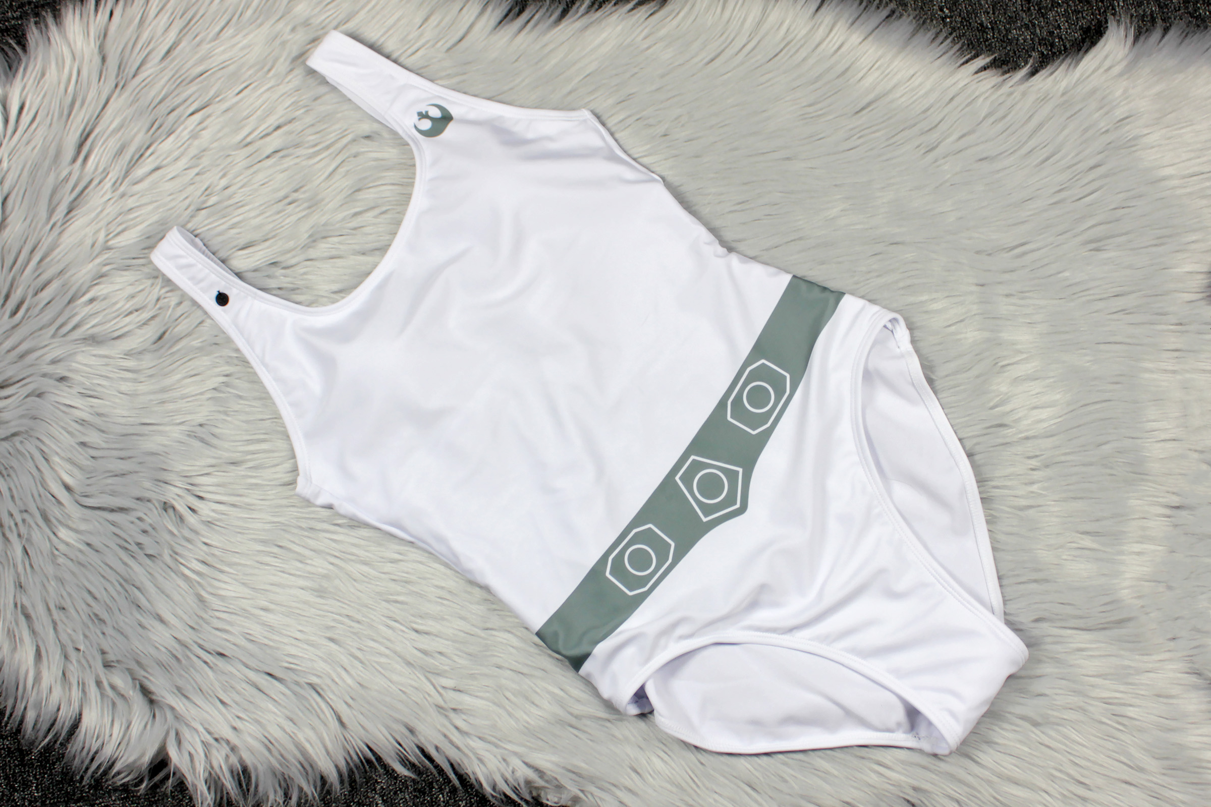 The simple and elegant one-piece swimsuit is an adaptation of Leia Organa’s outfit in the opening of Episode IV. Subtle details like the Rebel Alliance Crest, however, will show your true allegiance.