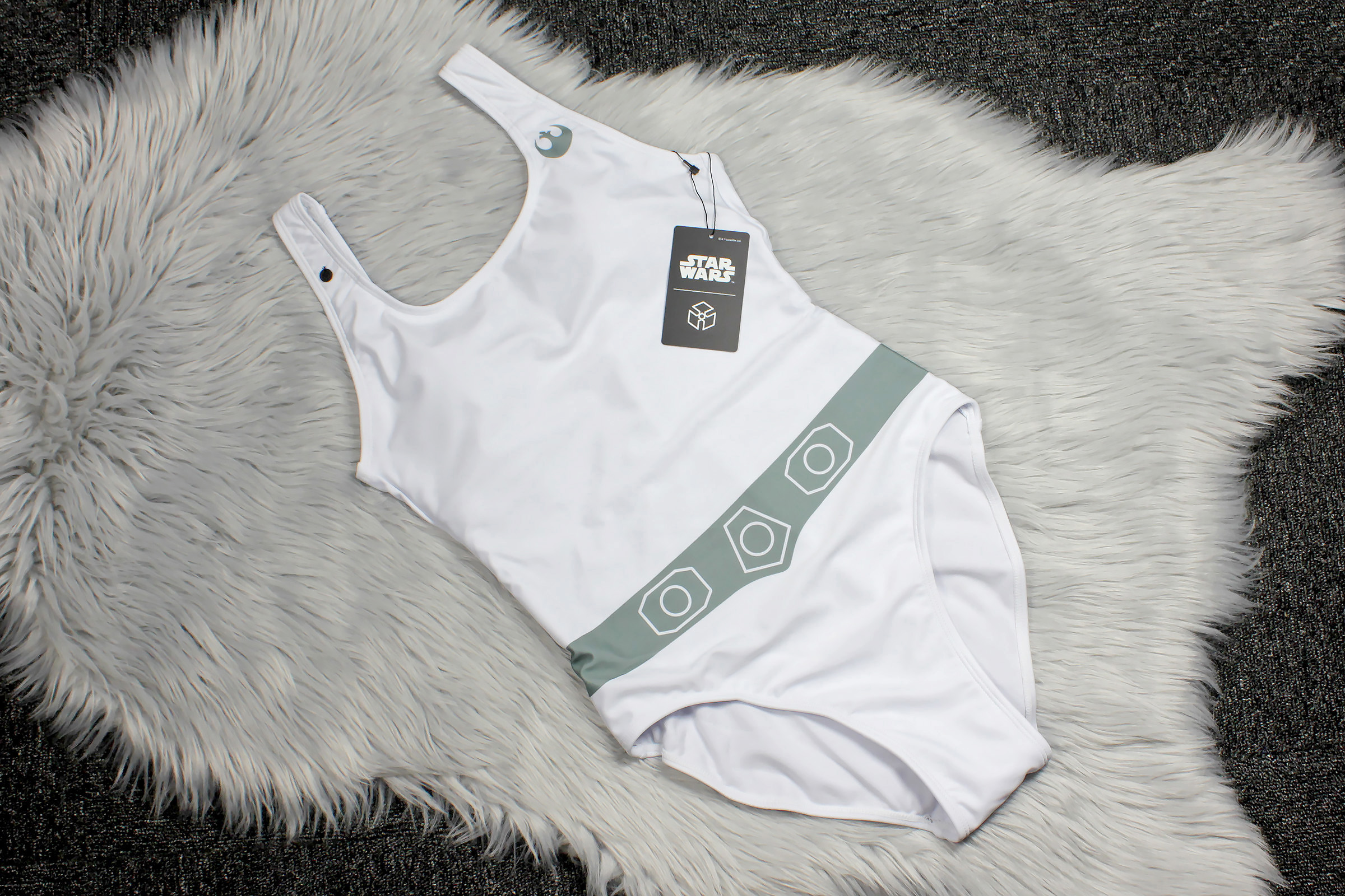 Today’s review features the women’s Musterbrand x Star Wars Princess Leia swimsuit. This swimsuit is part of the women’s Star Wars swimwear range that Musterbrand released earlier this year, and it caught my eye straight away. I am always on the lookout for more Star Wars swimwear for my summers at the beach, and this Leia swimsuit is a perfect mix of Star Wars style and subtle costume inspiration.