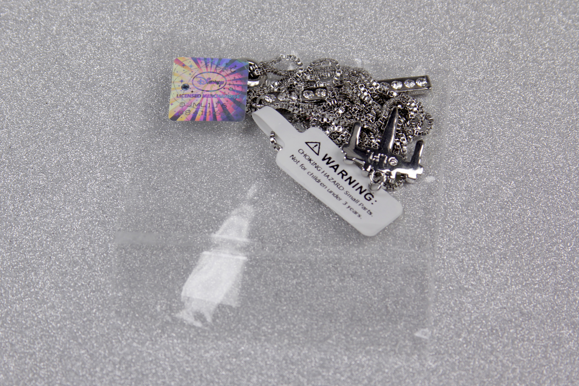 Inside, the necklace is kept secure in a clear plastic envelope – this envelope has a ‘Disney Licensed Merchandise’ hologram sticker, again noting this is officially licensed jewelry. Inside, the necklace also has a small label/barcode sticker attached, which is easily removed.