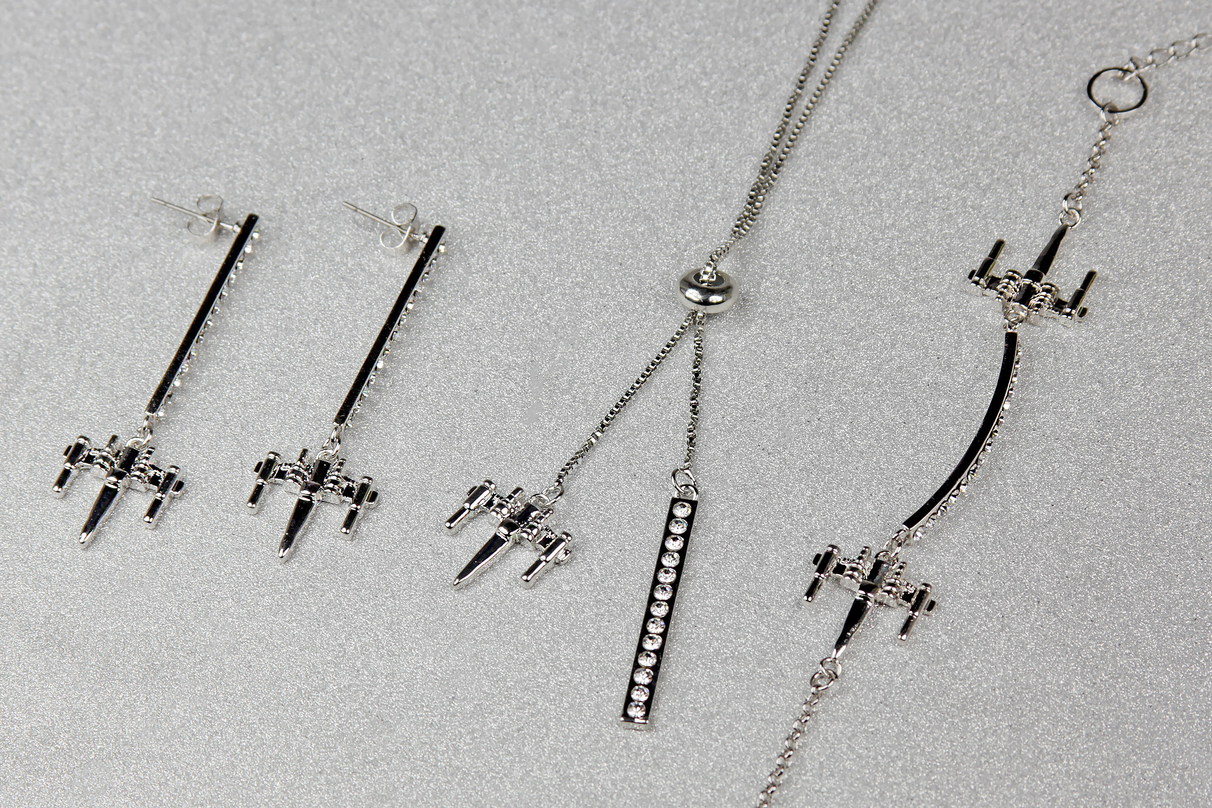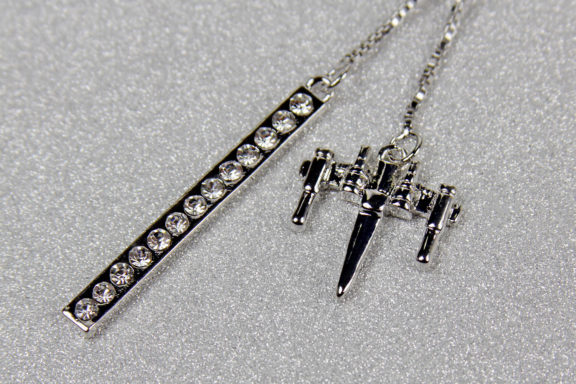 Wrap this necklace around you and fly one with the force . From way out in the galaxy, we present our x-wing series. One of the rebel alliances most advanced fighters, conquer the galactic civil war. We equip you with these X-wing pieces to prepare you for battle and bring you to victory