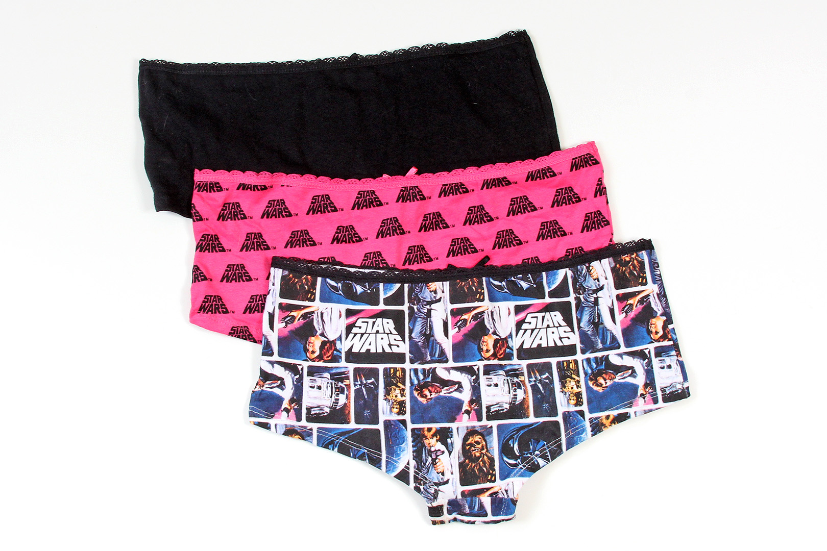 I love finding unusual Star Wars fashion items, there is so much more available out there for women than I’m aware of, as there are so many stores that don’t sell on-line. Many items I find from overseas stores are from resellers on ebay – this Star Wars ladies underwear set is one example. They are made by Primark, a fashion store in the UK and Europe, which unfortunately does not sell on-line. I love unusual items like this, I never find Star Wars underwear for women in New Zealand! I bought two packs, as I was a little unsure of the sizing – one set in size xs, the other in size s. I paid US$22.46 for each pack.