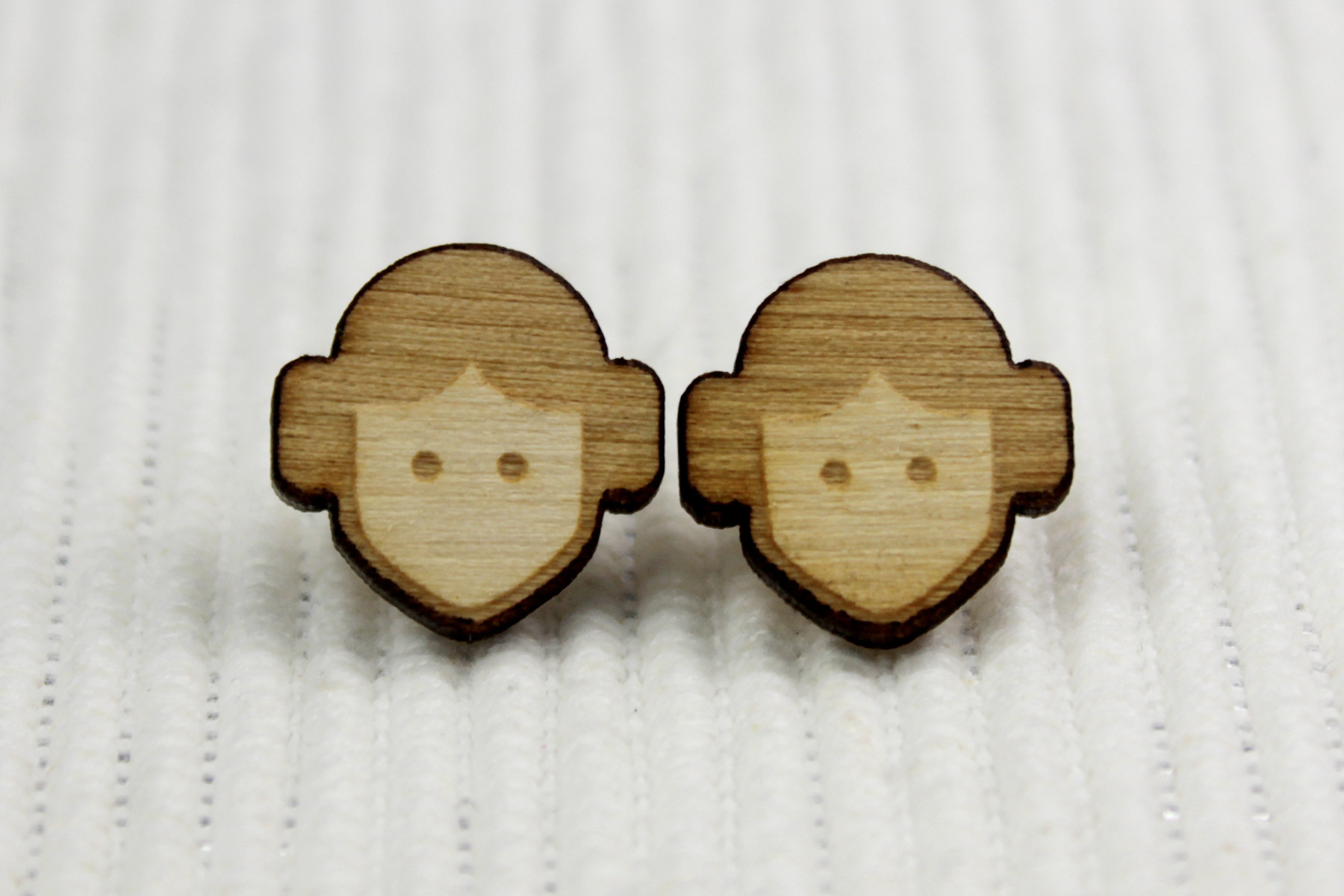 Princess Leia engraved wood stud earrings by Etsy seller ImpactEngraving