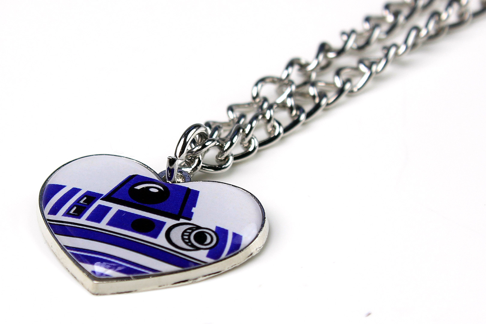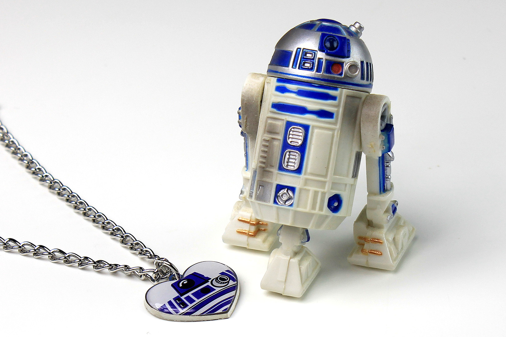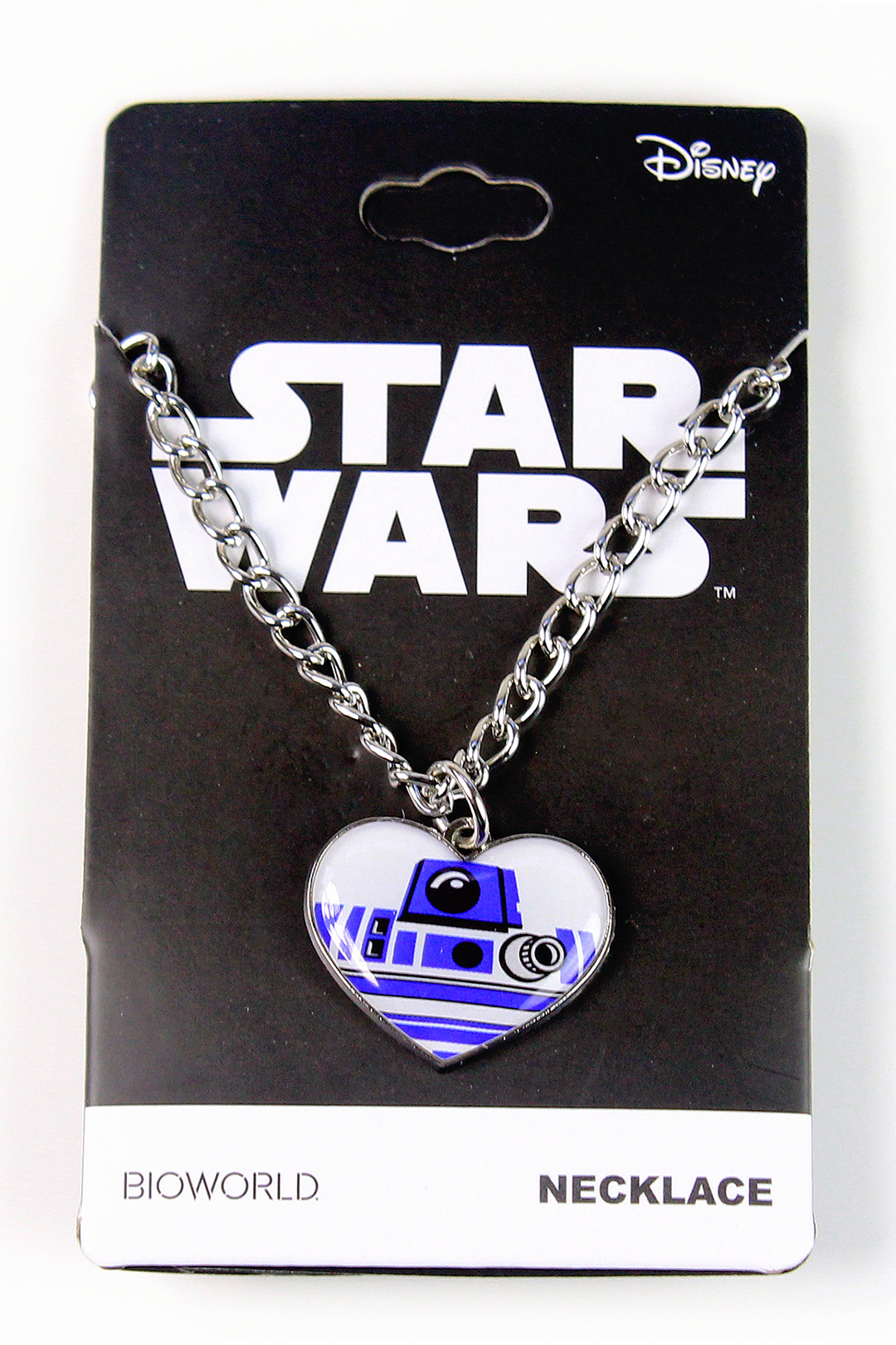 A little while ago I purchased this cute R2-D2 ‘heart’ necklace, after noticing it had already sold out on-line from Hot Topic, my usual stop for Bioworld x Star Wars accessories. I paid US$15.95 from a seller on Amazon, which is a little more than Hot Topic’s original price of US$10.50, but as I already had the earrings (included in a different set, reviewed here) I was quite keen to pick up the matching necklace before it completely sold out. It seems the necklace is no longer available (on it’s own) from the usual stockists, but a set which includes both the necklace and matching earrings is available from sellers on Amazon and eBay for around US$25.
