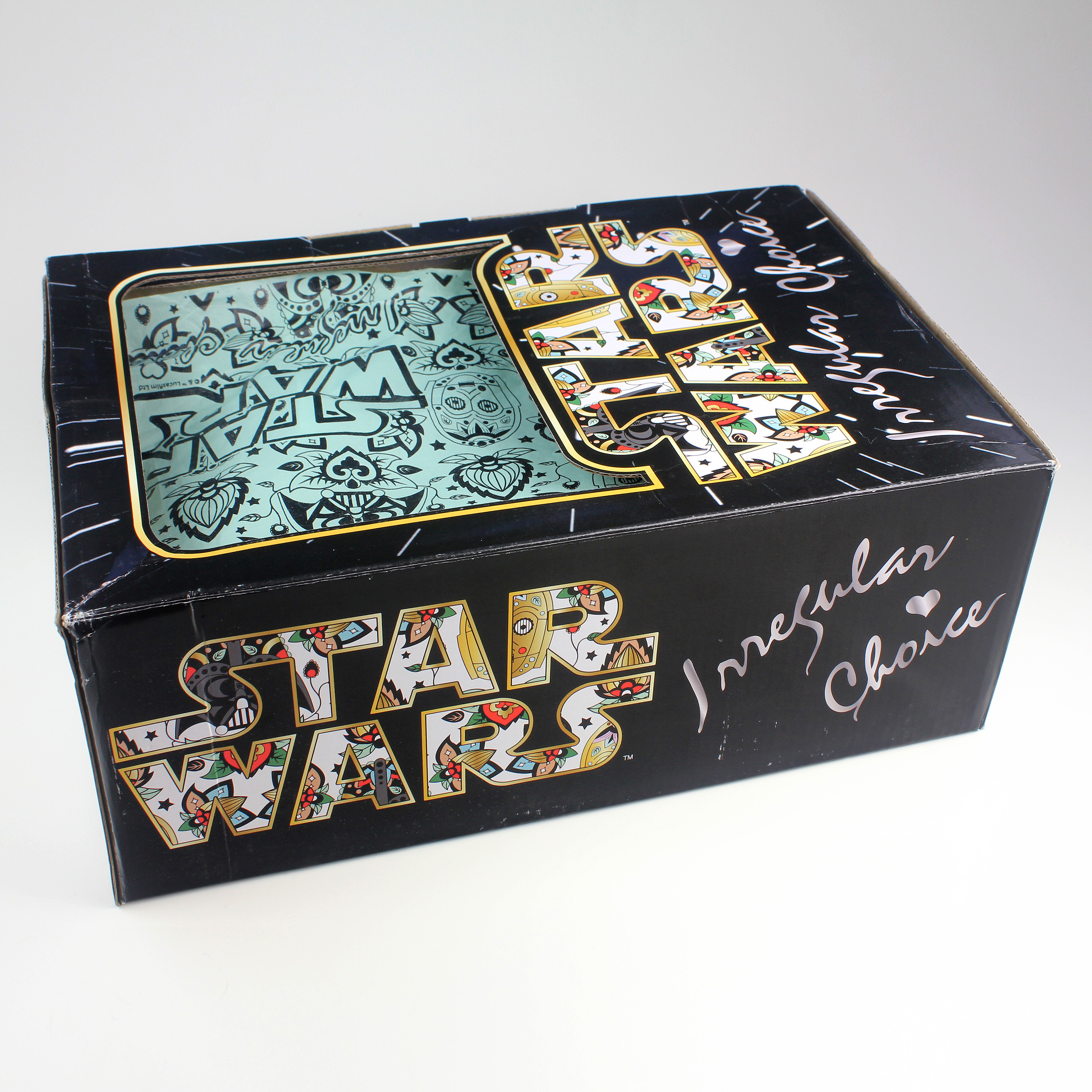 I have admired the range of shoes from Irregular Choice for quite some time, so it was very exciting to find their booth at Celebration Anaheim advertising an upcoming Star Wars collection! It was hard waiting so long, but now I finally have a pair of R2-D2 heels! While convention attendees could pre-order pairs at Celebration, I had such a hard time trying to narrow down my favourites, so I decided to wait until I could order on-line. I knew the collection was going to be popular, but certain styles/sizes sold out within 15 minutes of the launch – the R2-D2’s were the first to sell out. I had a feeling the R2-D2 heels would be the most sought after, so it was the first style from my wish list that I ordered – and I’m very glad I did! They have just arrived direct from Irregular Choice – and I couldn’t contain my excitement opening the boxes.