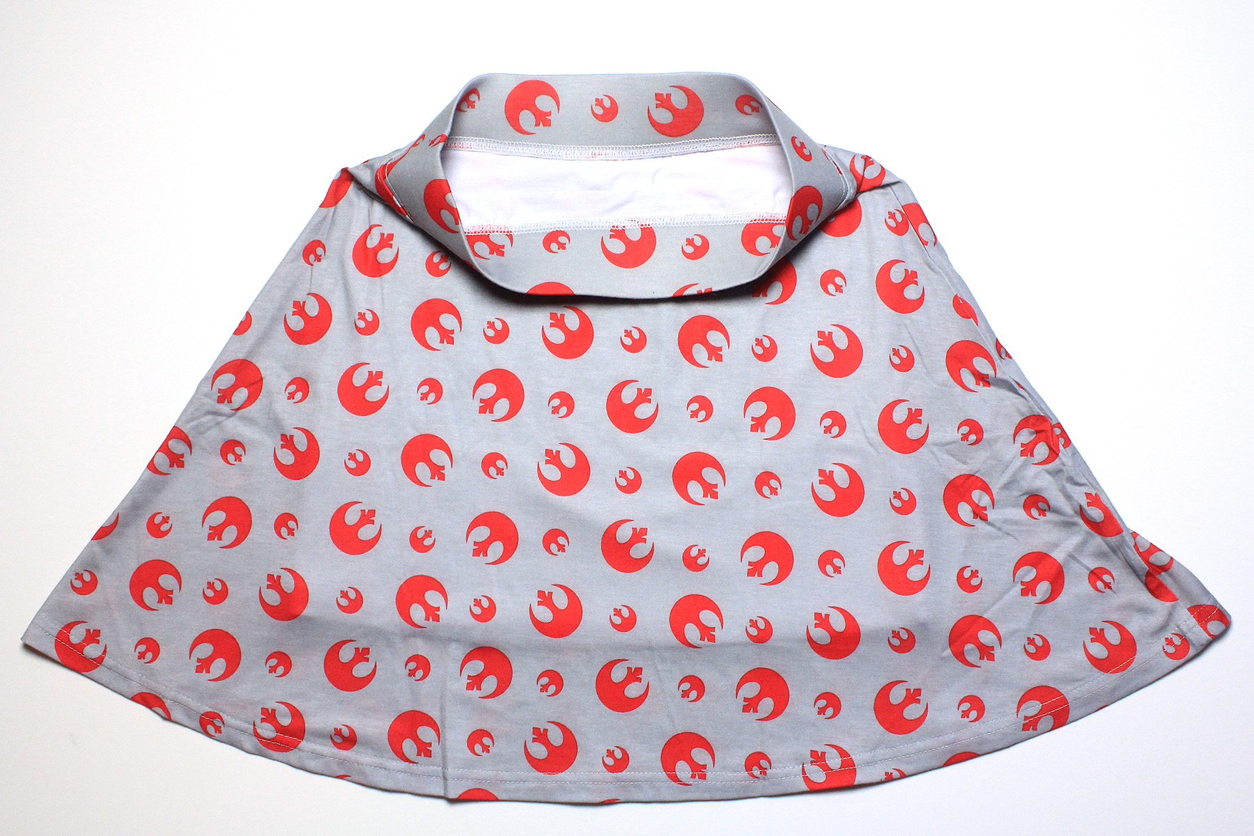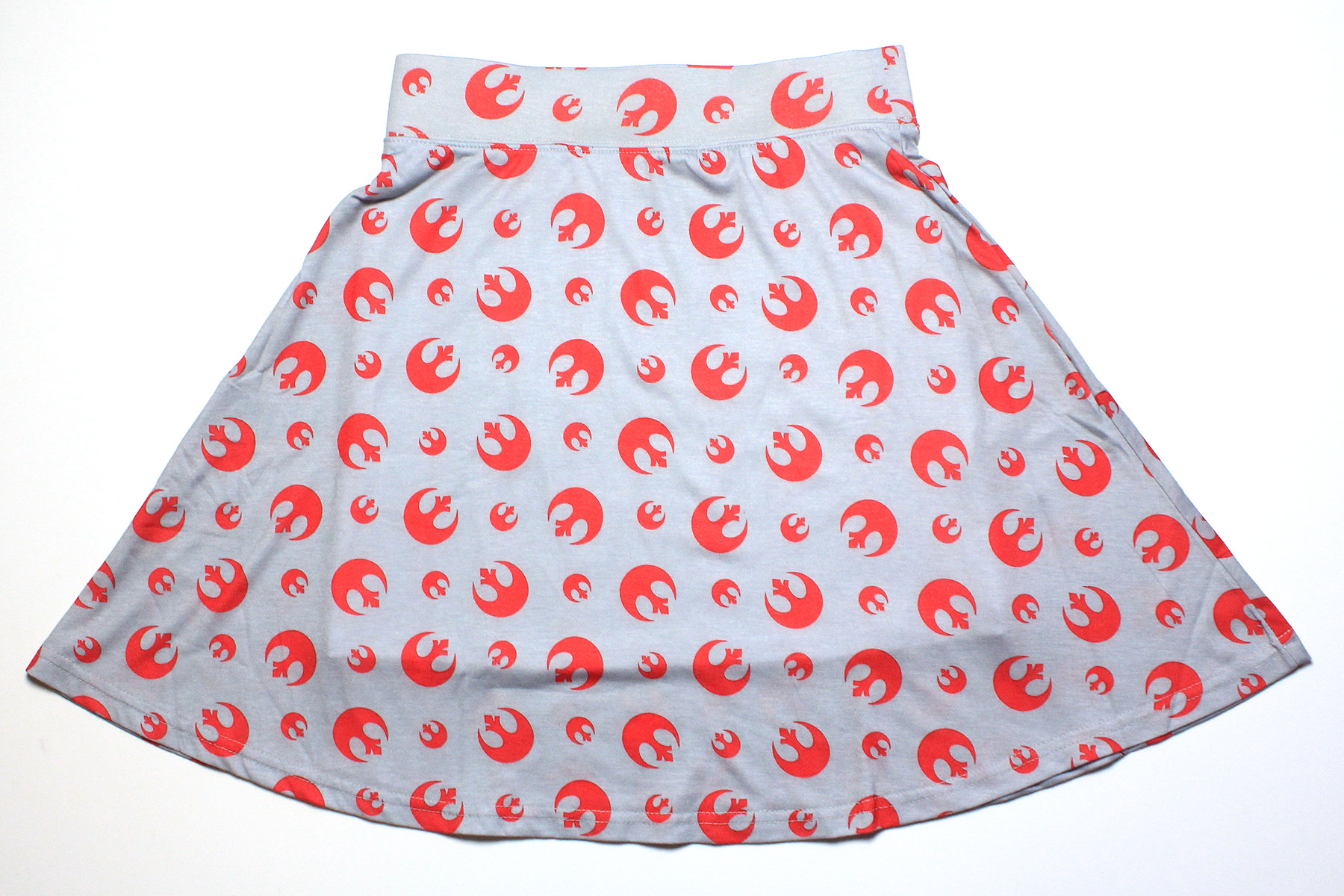 Released around May 2014, the Red Rebel circle skirt from Her Universe was one item I nearly missed out on. Living outside the US, I can only buy from Her Universe by using a mail redirection service. With that added expense (and currency exchange rates never in my favour), it’s a costly mistake if I order the wrong size. The item description noted that the skirt lining was fitted, and shoppers may want to size up – but I took so long trying to decide on which size to order, it slipped my mind, until just recently. This year for ‘May The Fourth’ Her Universe celebrated with a sale of up to 60% off selected items, so of course I checked if there was anything on sale I wanted. Luckily the Rebel Alliance skirt was still there, and on sale for US$20 (original retail was US$35). With only selected sizes still available, I decided to take a chance on ordering my usual size.