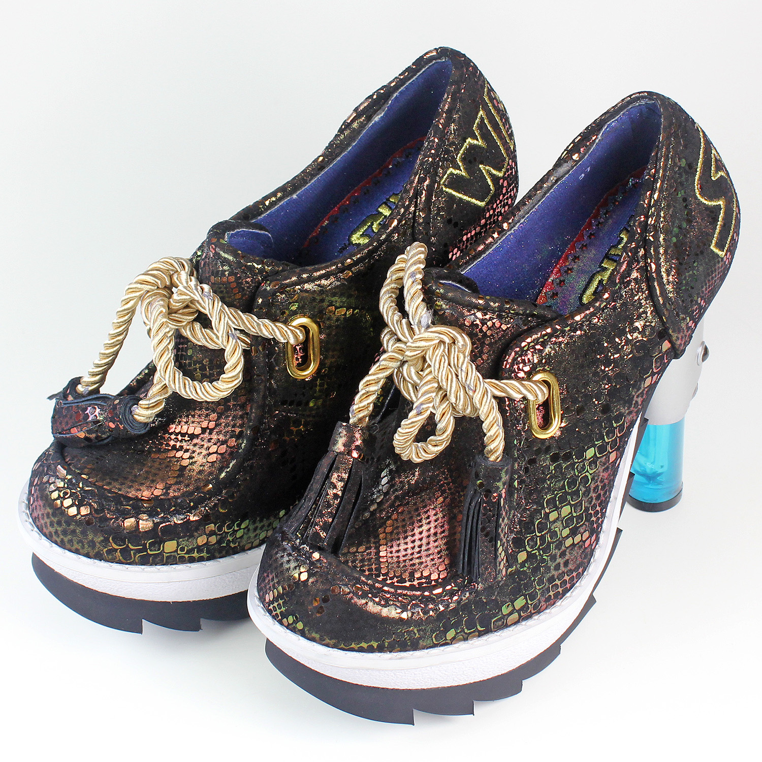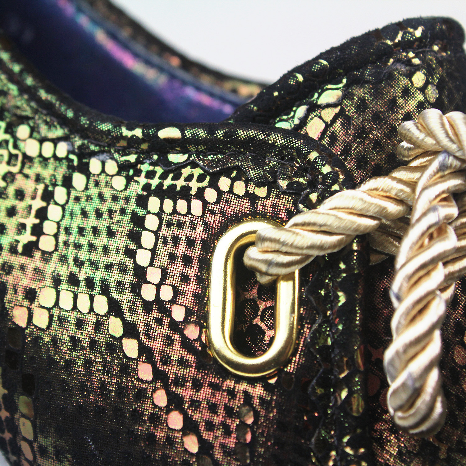 The shoes came in a special Irregular Choice x Star Wars cardboard box, with a clear window to show the mint colour printed tissue paper inside. Each shoe was carefully and securely wrapped in white tissue paper. Inside the shoes were the standard ‘sticks’ to hold out the heel, again with tissue paper in the toe of the shoes. This design looked rather brown in the preview images, a colour I’m not usually drawn to – so it was really interesting to see these shoes in person – they’re so iridescent they’re not really brown at all.