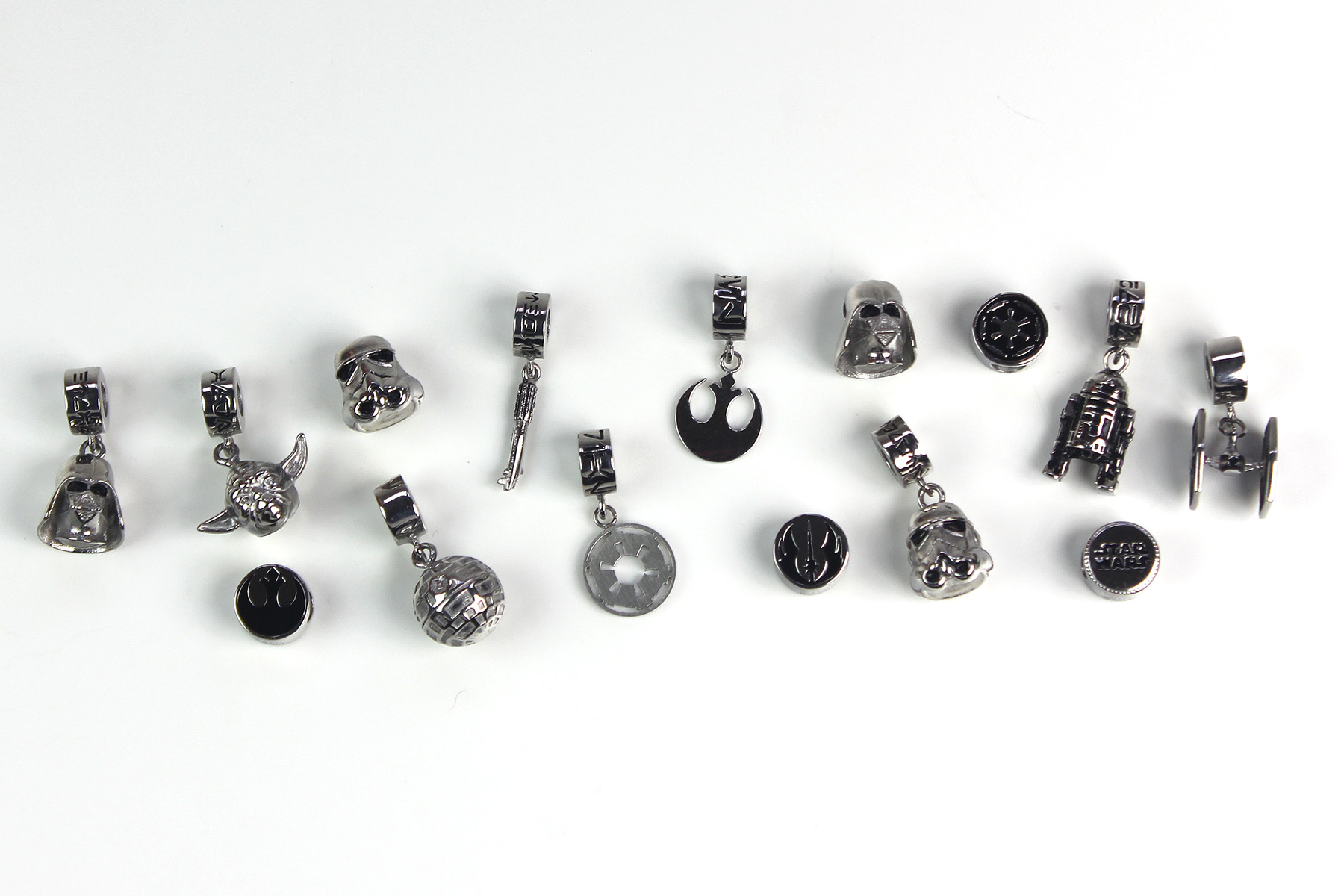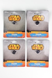 Back in early June these Star Wars spacer charm beads were added to the Body Vibe wholesale website, and I eagerly awaited their arrival at retailers. I was unable to find them at any of the regular Body Vibe stockists, which I thought was unusual – then later that month they showed up on sale at Zulily! I quickly grabbed one of each of the four styles, priced at US$14.99 each. They are available from sellers on Amazon and eBay, with current prices ranging from US$17.25 to US$37.99 (shipping prices and policies will vary by seller).