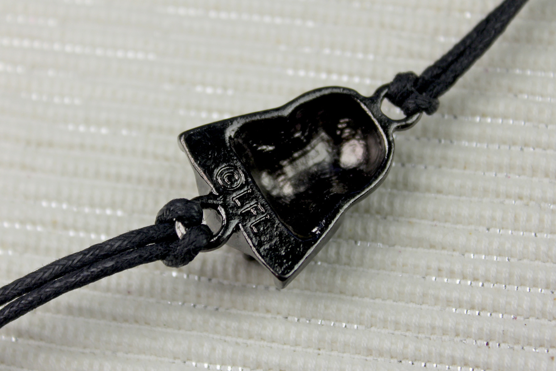 This is the only pendant which has a curve in it – being the longest pendant in the set, the curve helps it sit better against your wrist when worn. The back is stamped with the ‘©LFL’ copyright stamp. The text ‘The Dark Side’ on its own isn’t copyrighted/trademarked etc, but as part of a licensed set, the copyright mark helps distinguish the bracelet from any similar fan-made versions.