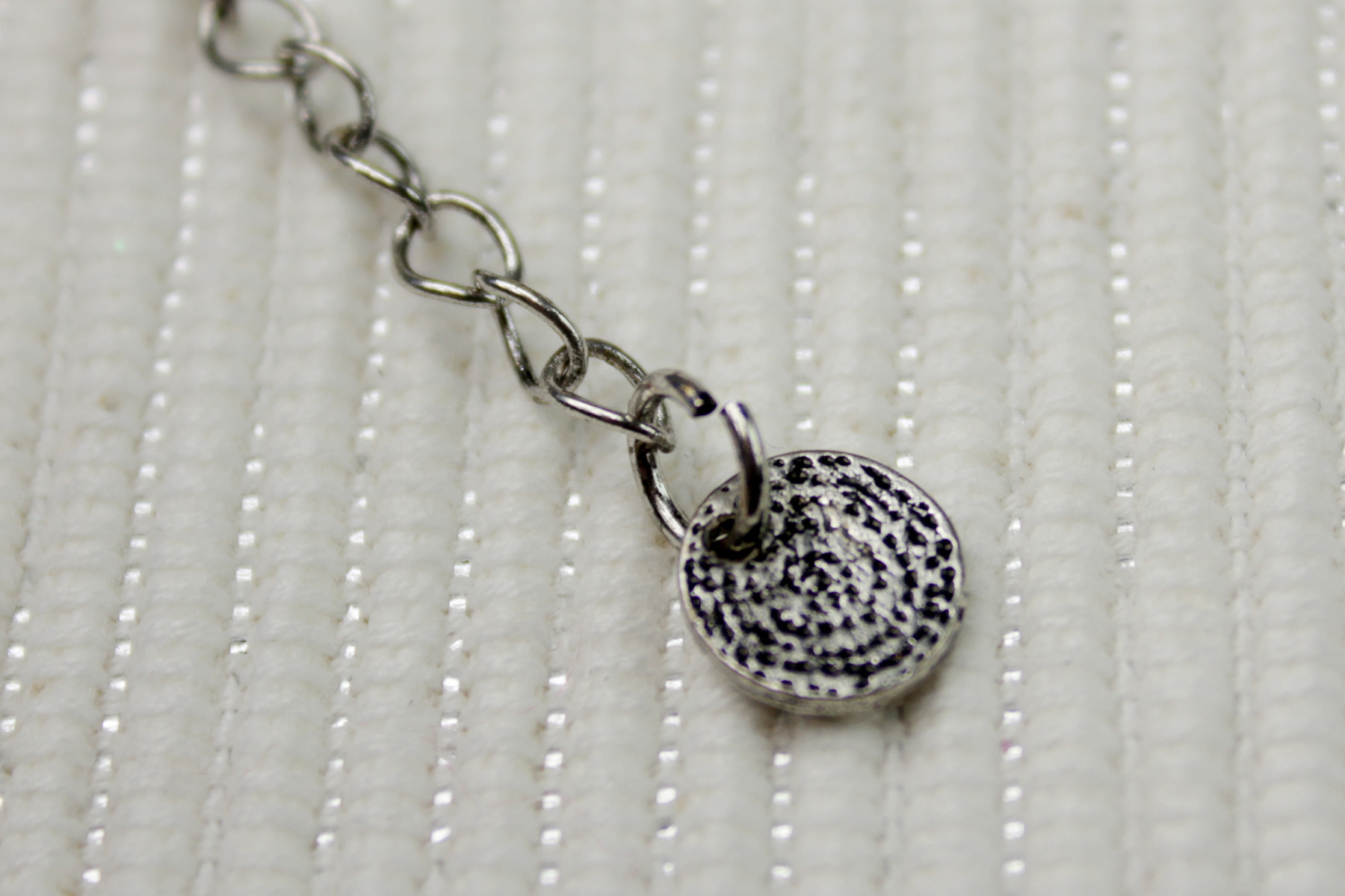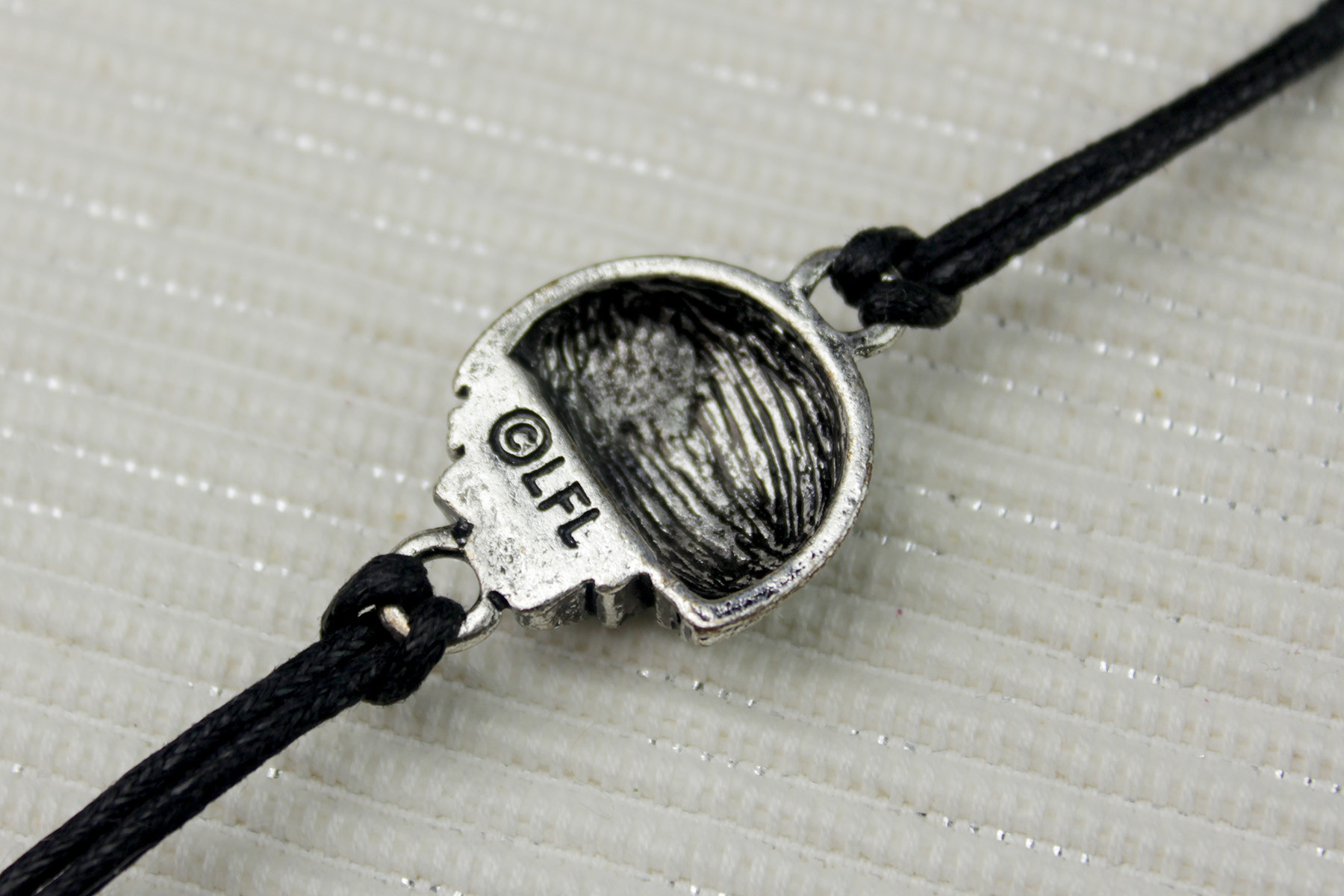 While the other 3 bracelets feature a small decorative ball pendant at the end of the adjustment chain, the lightsaber bracelet does not. Due to its small size and flat textured back, the lightsaber pendant does not feature the ‘©LFL’ copyright stamp on the back. As there is a licensing requirement to have it marked somewhere on the item, instead there is a small circular pendant at the end of the adjustment chain, which features the LFL stamp.