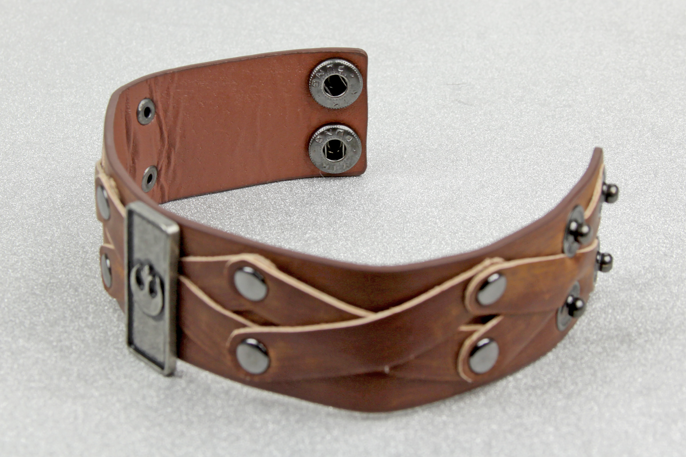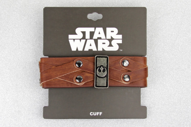 Today’s review features the Star Wars Rebel Symbol bracelet made by Bioworld. The faux leather bracelet features a wrist cuff design, which is reminiscent of the leather cuff Rey wears with all her costumes. I am always on the lookout for Rebel themed accessories for my collection – the brown faux leather works well with jedi themed outfits too!