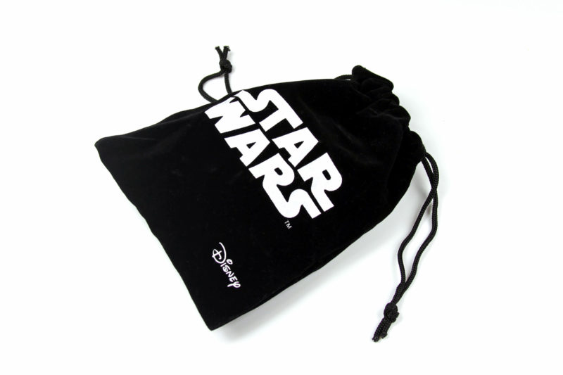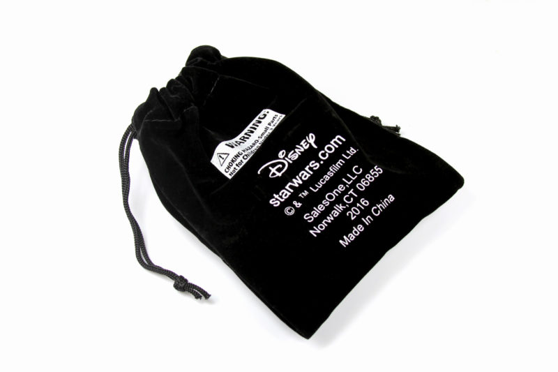 The bracelet came packaged inside a black velvet drawstring bag, with the Star Wars and Disney logos printed in white on the front. The back of the bag features the manufacturers information – this bracelet is made by Body Vibe. Many websites don’t include the manufacturer – so I am always curious to find out when an item arrives. Inside the velvet bag, the bracelet was sealed in a clear zip-lock bag.