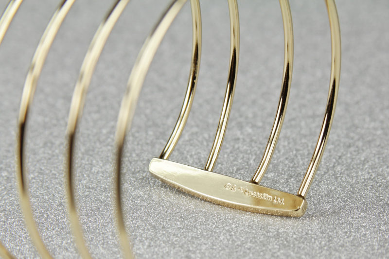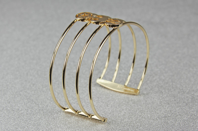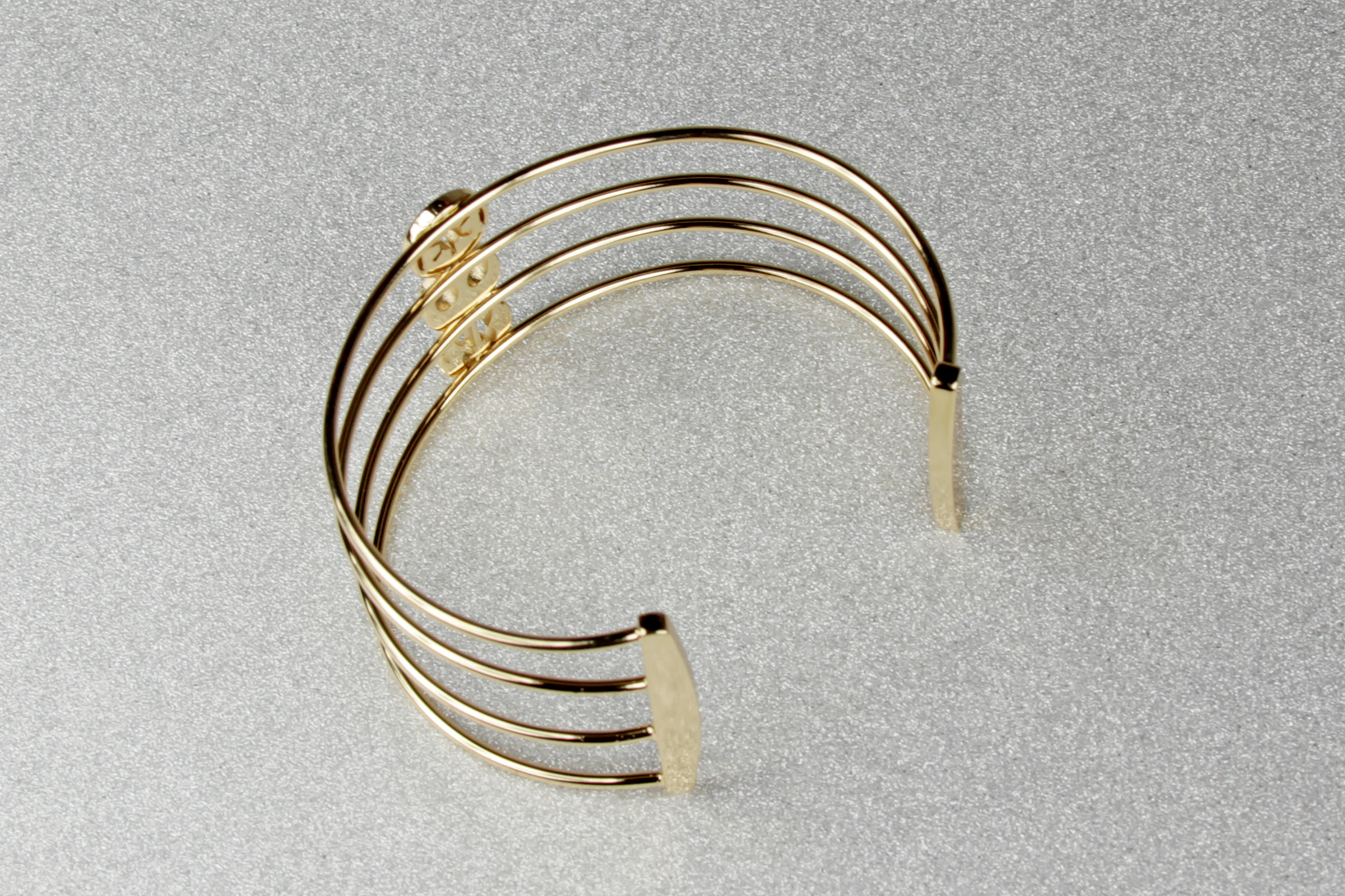 The open cage design allows for a large size bracelet, without added weight. The four wire strands give the impression of multiple thin bangles, all evenly spaced. The bracelet feels quite light – without being flimsy.