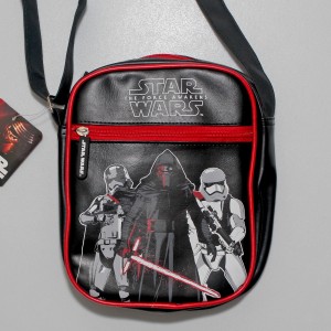 As it is unfortunately not very often I find Star Wars fashion or accessories available here in New Zealand, I was very surprised to find this Star Wars shoulder bag while shopping at my local stationery store! The bag is made by Imagine8 UK Ltd, which holds several licenses including Star Wars, Disney, and Marvel. The shoulder bag was priced at NZ$24.99 each (approximately US$17.02) – but I paid NZ$14.99 on sale. It is still available from Warehouse Stationery NZ, but they do not ship outside New Zealand.