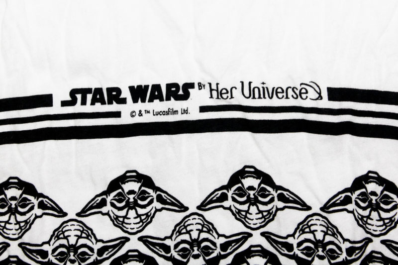 In August last year, Her Universe released a mini collection of Star Wars apparel, with a ‘Back To School’ theme. Her Universe used the classic ‘jedi training’ theme as a Star Wars version of school, with Yoda as the featured character. Being a big fan of jedi-themed apparel, I picked up three items from the collection – the ‘Jedi Knight’ cardigan, the ‘Jedi In Training’ top, and the Yoda print scarf.