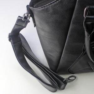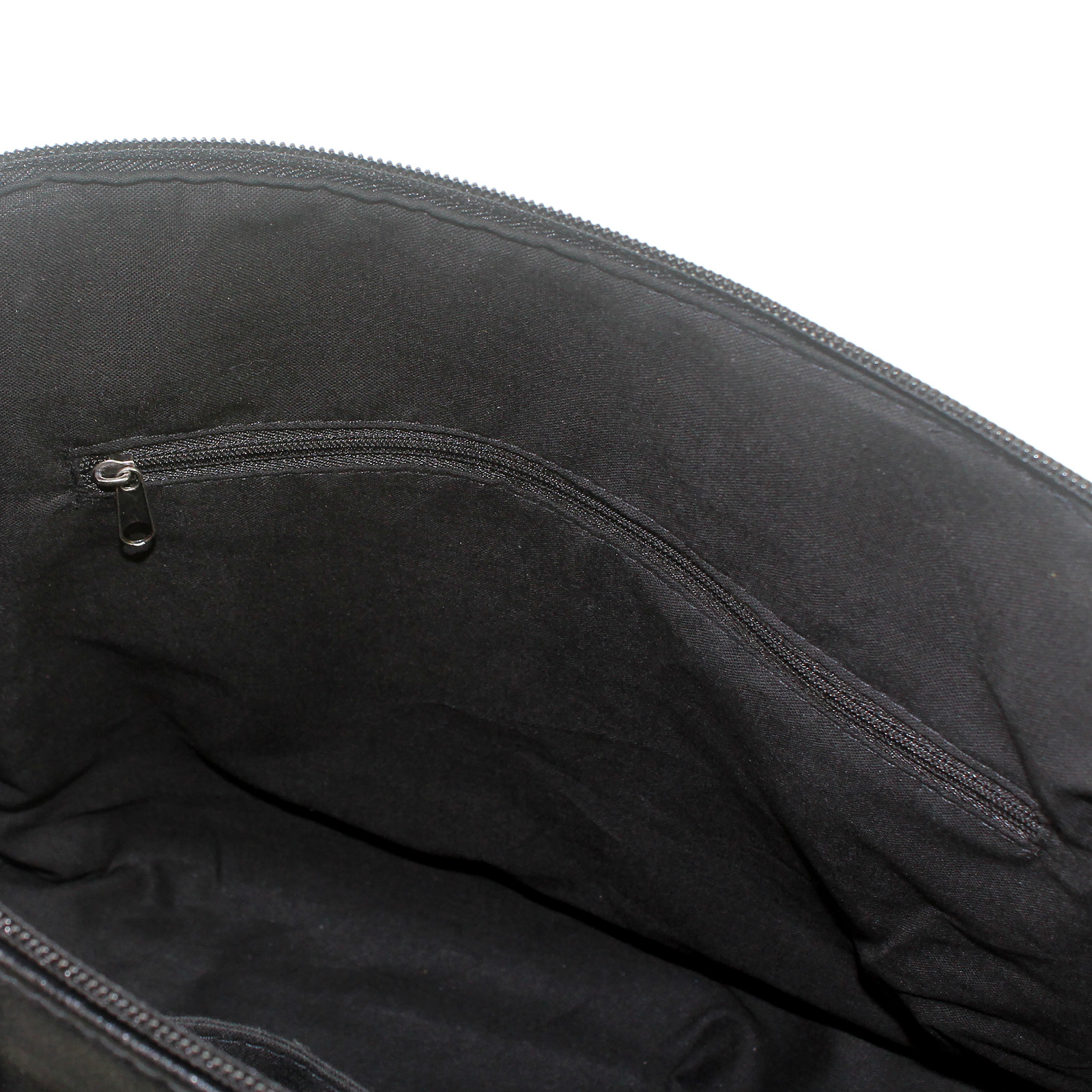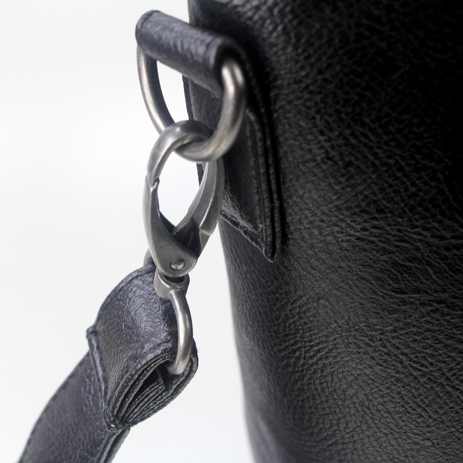 Inside, the bag is lined with plain back fabric, with two pockets (one on each side) – one is open, the other closes with a black zipper. I thought it was interesting that this bag doesn’t use the Star Wars logo printed fabric that appears in almost all of my other Loungefly x Star Wars bags. The lining fabric used here appears to be cotton, but I can’t find information on the tags to confirm. I think the plain lining works well with the ‘simulated leather’ finish, rather than the shiny finish of the printed lining. Also, the metal hard wear on the bag is different to my other Loungefly x Star Wars bags. The zip has a standard style zipper pull, not the larger-size style with the Loungefly logo that I usually see (even on the wristlets and coin purses). The zippers and hard wear all have a gunmetal finish, which work really well with the more subtle style of the bag (not as contrasting as silver). I should note the bottom of this bag does not have the little stud ‘feet’ like the Loungefly mini dome bags – they have less use on a shoulder bag, as you tend not to put them down as often as bags with only handles.