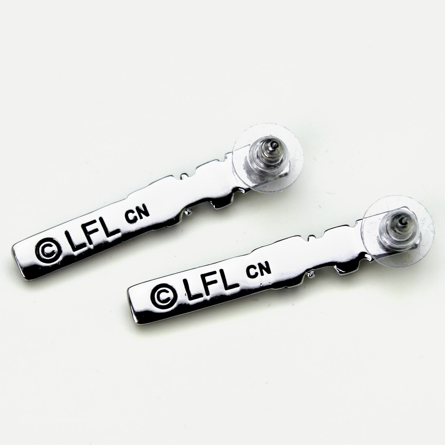 The ‘Star Wars Lightsaber Colored Stone Silvertone Drop Earrings’ feature Darth Vader’s lightsaber with red rhinestone details. The stud earrings are flat backed, so they sit comfortably against your ear when worn. The backings have a wider clear circle of plastic to help keep the earrings from ‘hanging’ when worn, due to their longer shape. I was a little worried these would feel heavy to wear, as they’re a little larger than I was expecting, but they’re actually quite comfortable. I love the longer length, it’s really clear they are lightsabers.