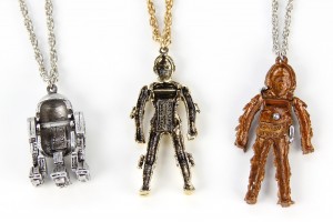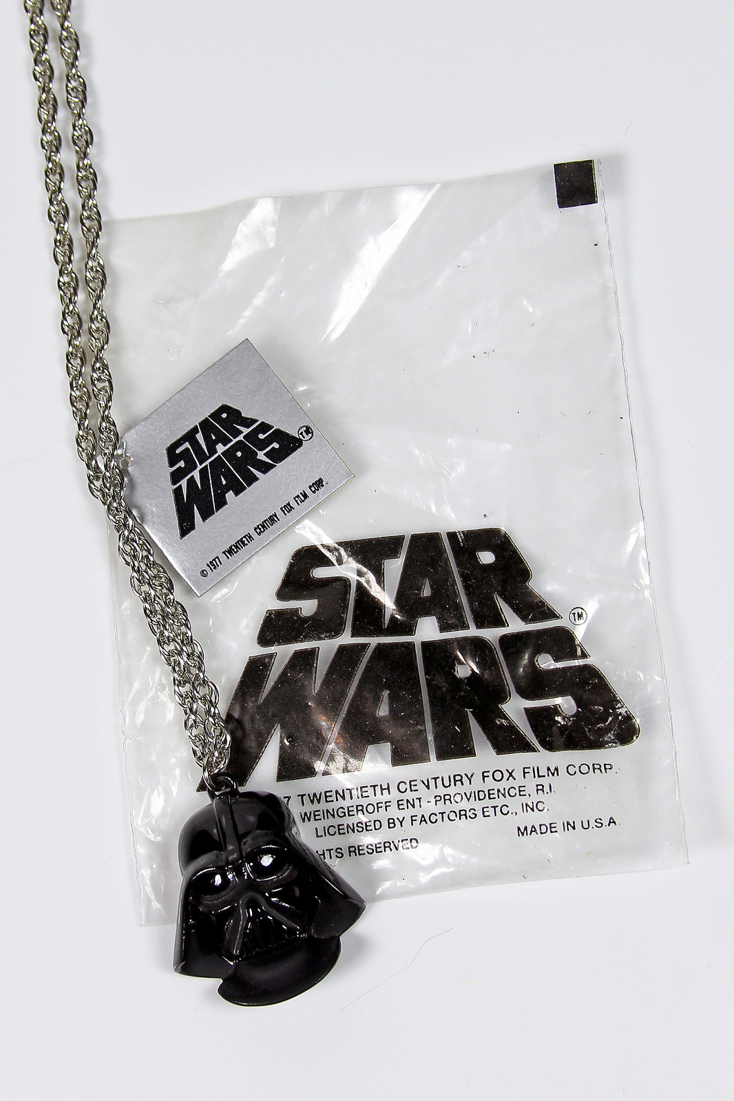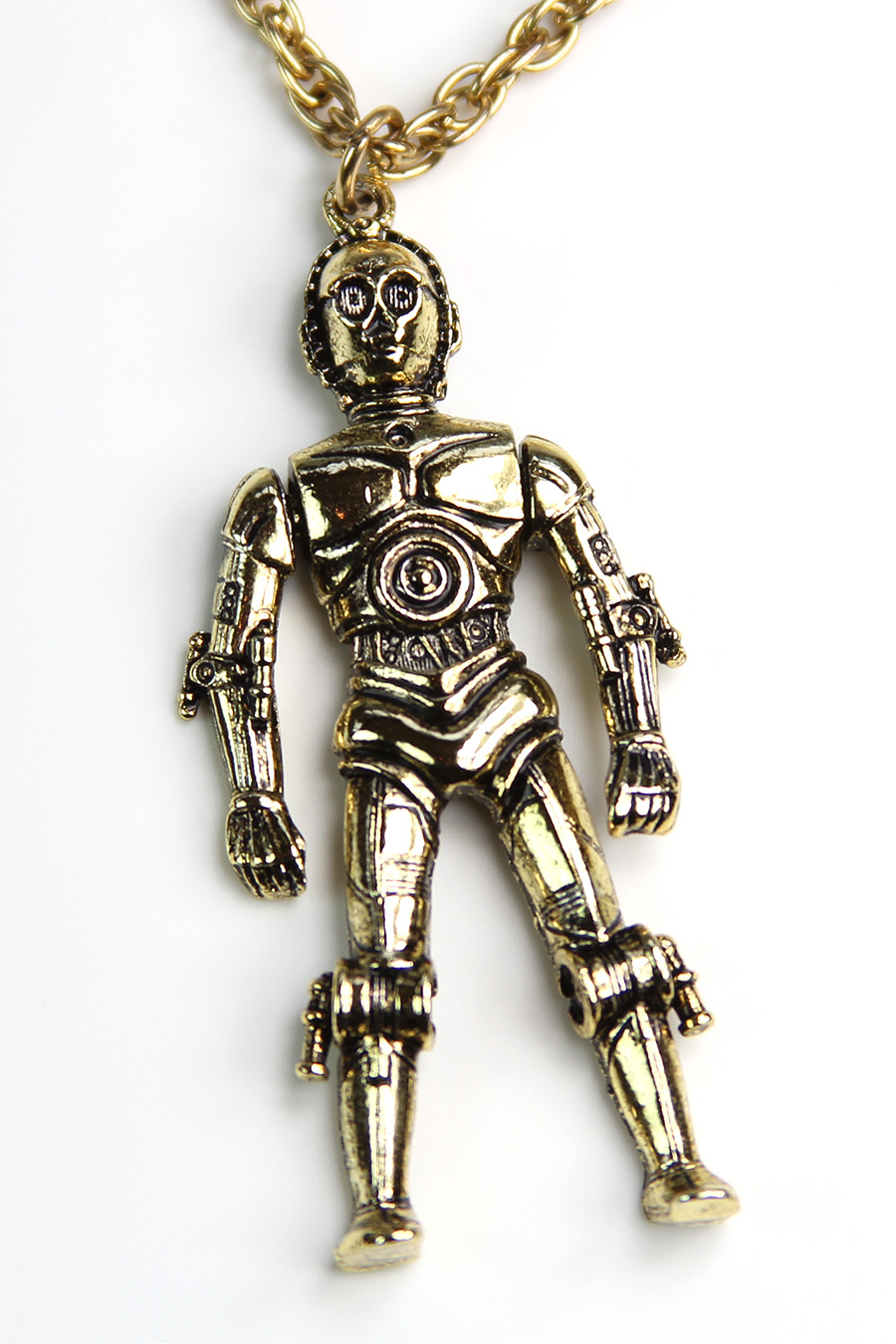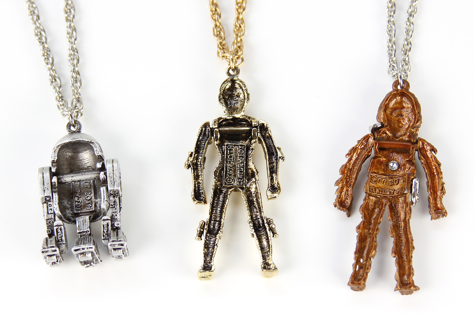 My first vintage Star Wars purchase for my wardrobe was the R2-D2 and C-3PO necklaces made by Weingeroff Ent. Providence, R.I. (licensed by Factors Etc, Inc) in 1977. They are amongst the first ever Star Wars merchandise – they feature the 20th Century Fox copyright details, with no mention of Lucasfilm. They were made in the United States, another point of difference compared to the jewelry made for subsequent films by different companies. After seeing the necklaces in person, I was impressed with their detail and design – and quickly tracked down the rest of the set.