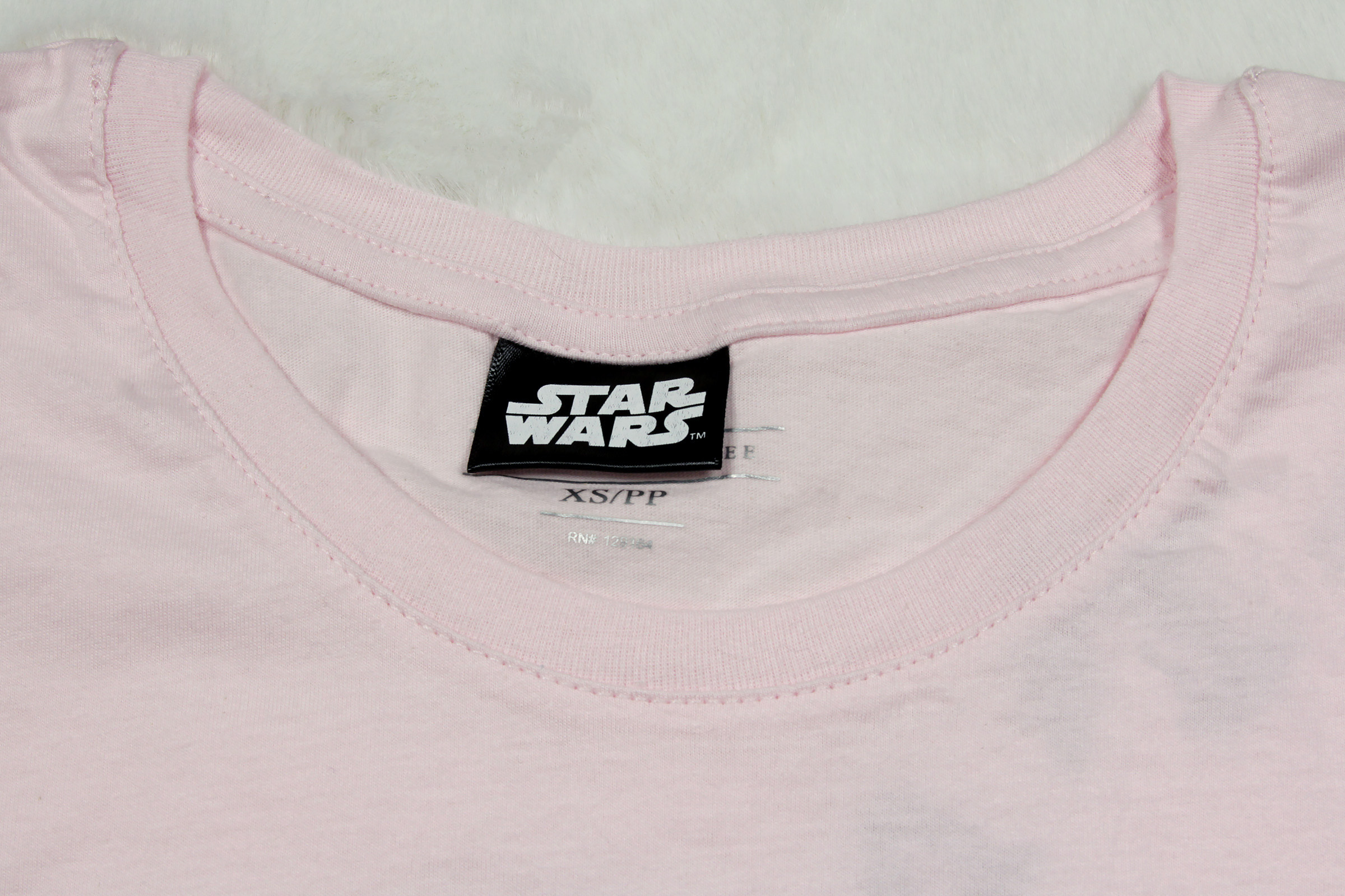 It is rather uncommon for women’s Star Wars t-shirts to feature printing on both the back and front – perhaps this is because many women have hair longer than shoulder length, which would cover back artwork when worn down. For a print this cute, I’ll gladly wear my hair up just to show it off!