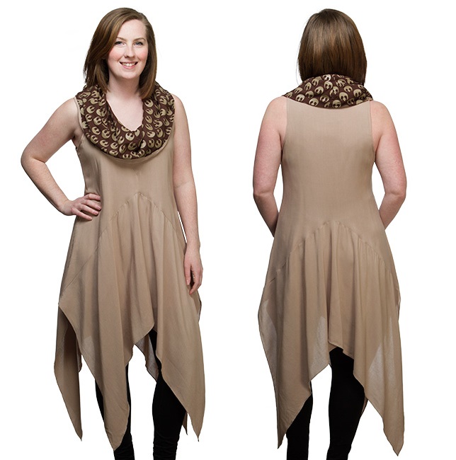 Thinkgeek has just added a new item to their women’s Star Wars apparel range – the Rey themed dress made by We Love Fine! The dress features a hood with printed lining with the Resistance (Rebel Alliance) logo, and a handkerchief-style hem. Priced at US$49.99 each, the dress is available in sizes S to 2X – Thinkgeek can ship internationally. This dress was first released as part of We Love Fine’s recent collection in December last year (it is priced US$55.00 at We Love Fine). We Love Fine note they cannot ship this item outside the USA, but Thinkgeek does not list any shipping restrictions – which is great news for international fans!