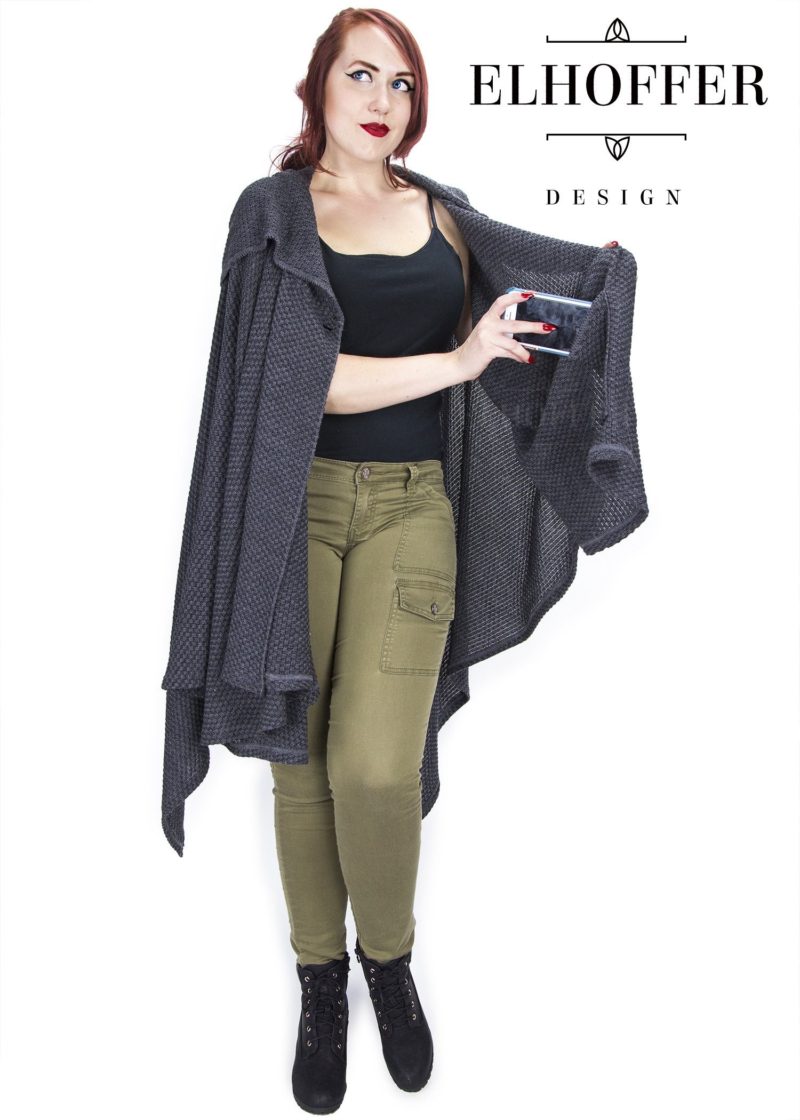 - 100% Acrylic Yarn – Charcoal Grey shot with Black in a textured, lightweight knit