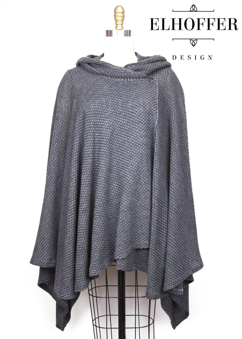 The cape is inspired by Rey’s new look in The Last Jedi trailer, made from a grey 100% acrylic yarn (great for those who have a wool alergy). The loose fit style is complemented with a cowl hood – and it even has pockets!