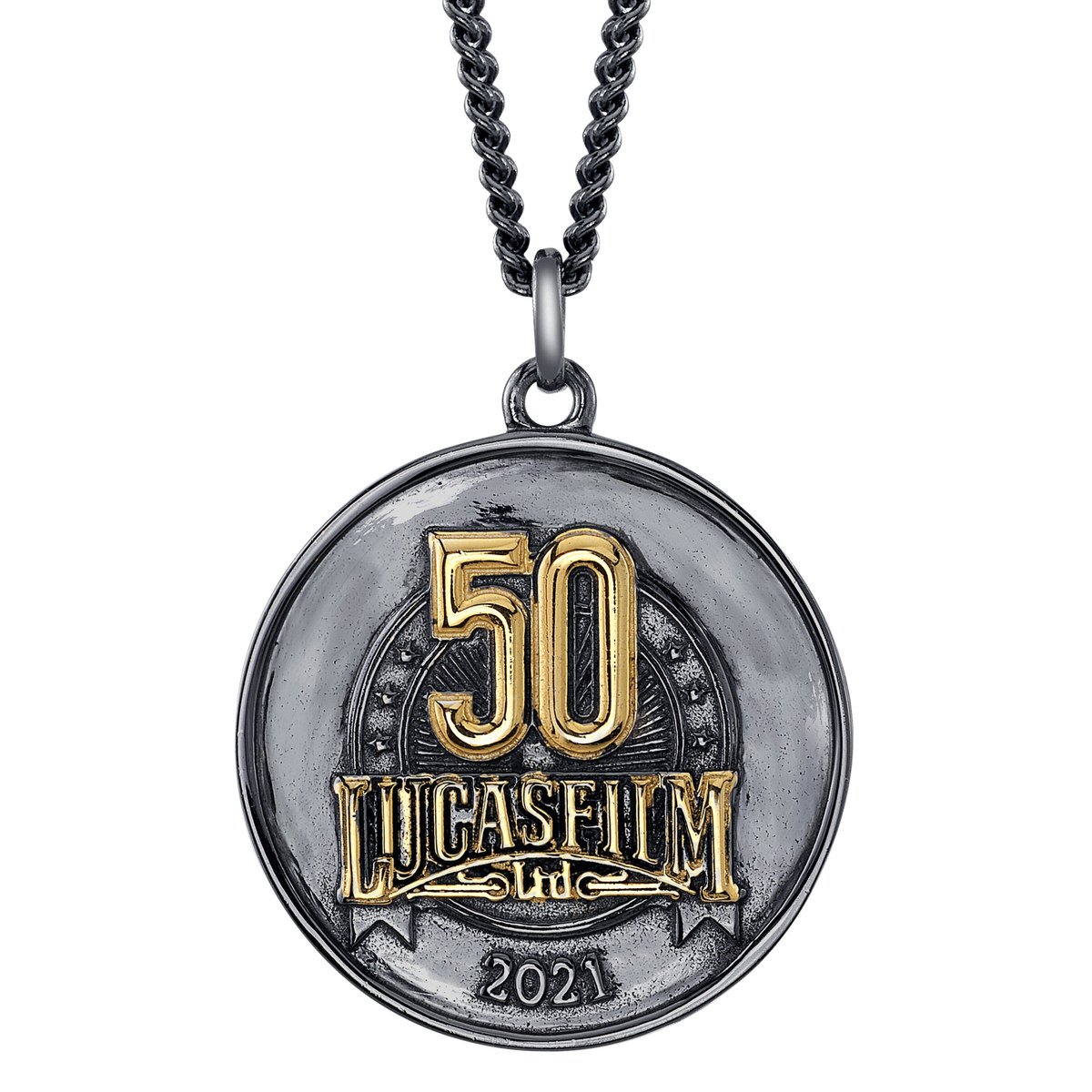 Sculpted in solid sterling silver, featuring a two-toned black rhodium and genuine yellow gold plated finish, the medallion showcases the iconic IMPERIAL COG in sculpted relief. Double sided, the reverse features the official commemorative Lucasfilm 50th Anniversary seal. Balanced by an equally hefty weave, the substantial coin-style pendant hangs from a matching black rhodium plated adjustable 24 inch sterling chain.