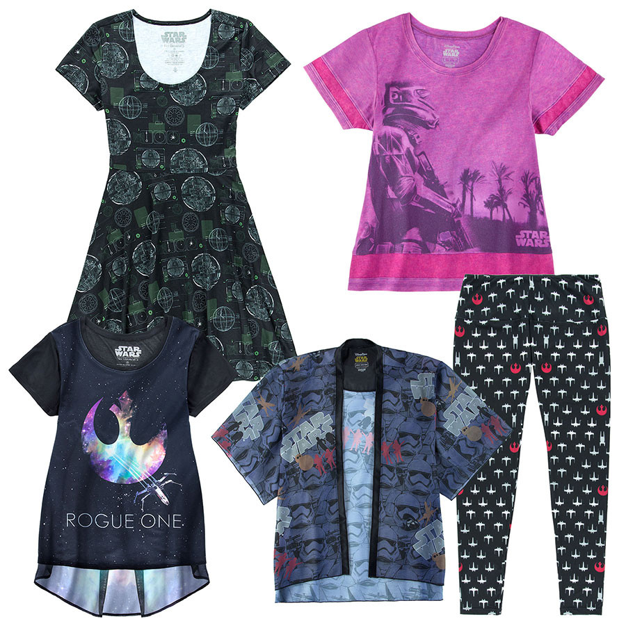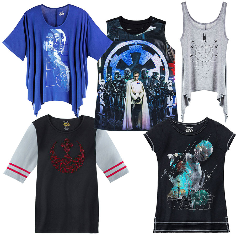 Women will find a variety of stylish shirts featuring characters from the upcoming film including Jyn Erso or the Rebel Forces Tactical Droid, K-2SO. We will also have apparel from the Her Universe collection including a most impressive dress covered with images of the Death Star.