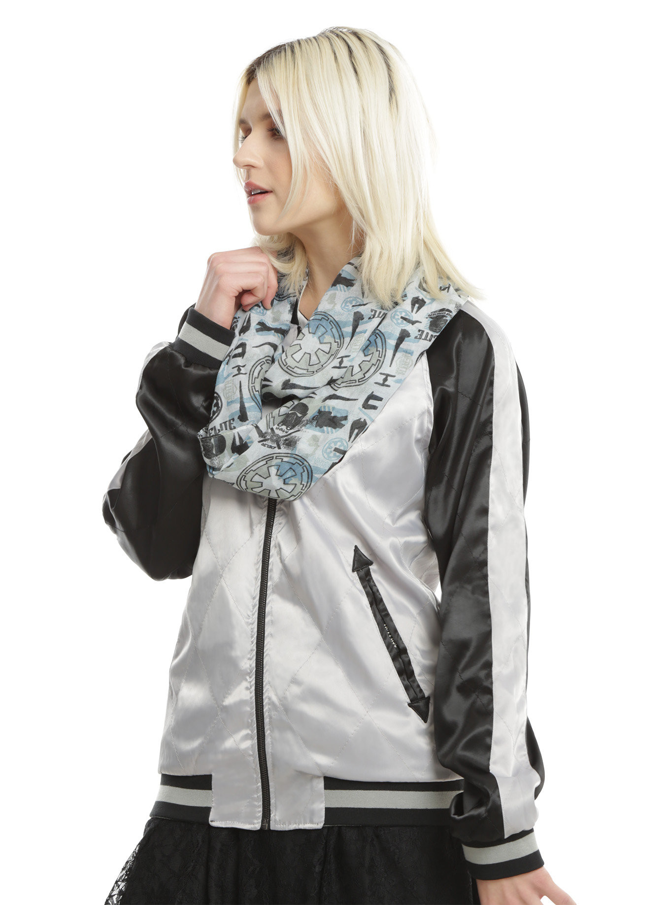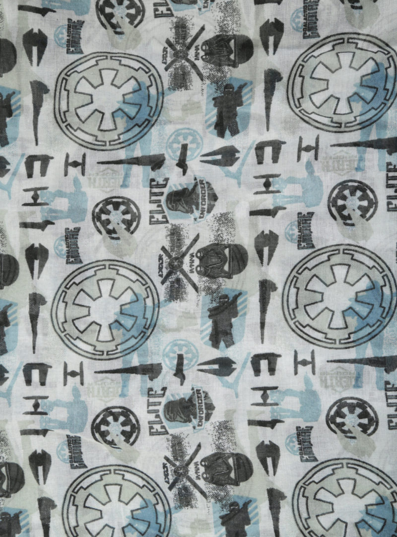 This new Rogue One fashion scarf is available at Hot Topic. The lightweight scarf is made from 100% polyester, and features an all-over print of Rogue One symbols, characters and vehicles, with an Empire theme. I really like the grey and blue colour scheme, with the subtle overlapping images.