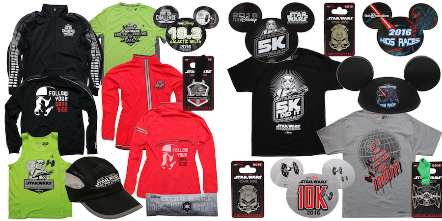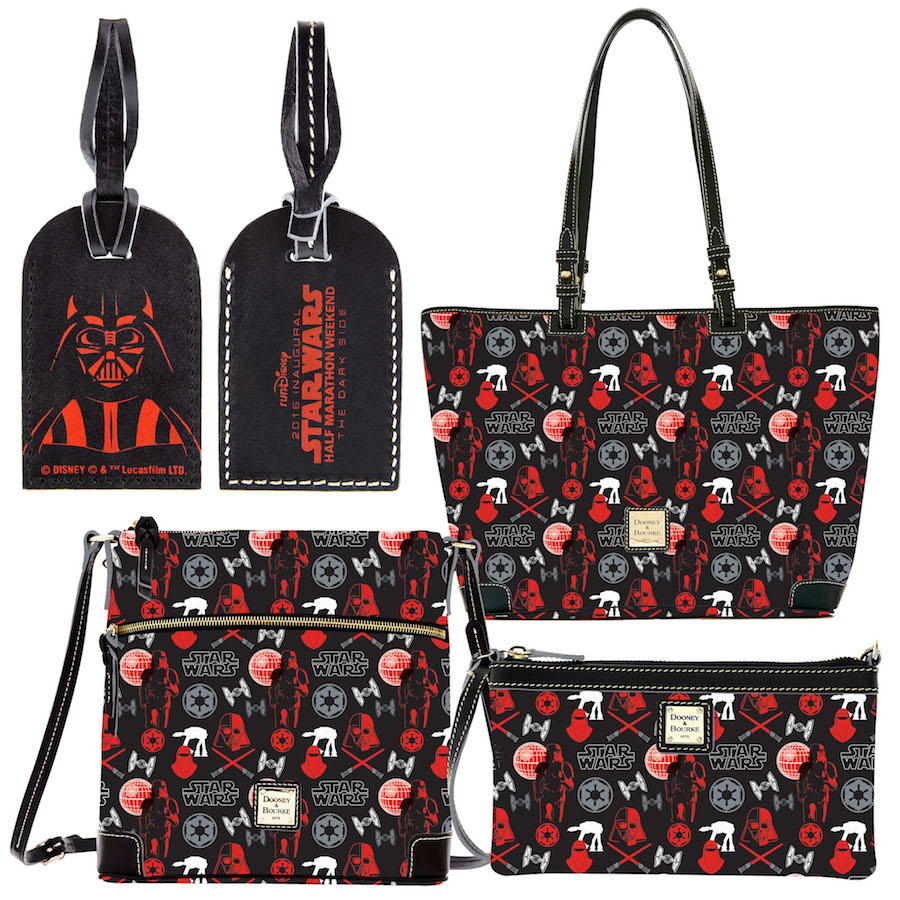 The Run Disney Star Wars ‘Dark Side’ Half Marathon Weekend is coming up this weekend at Walt Disney World, and there will be a lot of apparel available. Together with the new Dark Side-themed Dooney & Bourke handbag range that was revealed earlier, the expo merchandise includes a huge array of women’s Run Disney x Star Wars apparel and accessories. Any one can purchase these items from the expo, as you do not need to enter a race to attend the expo, though of course, many of the items only make ‘sense’ if you completed the race/s mentioned on the apparel. As well as t-shirts and tank tops, the range includes caps, headbands, jackets, and collectible pins.