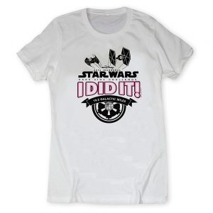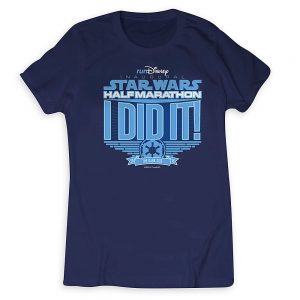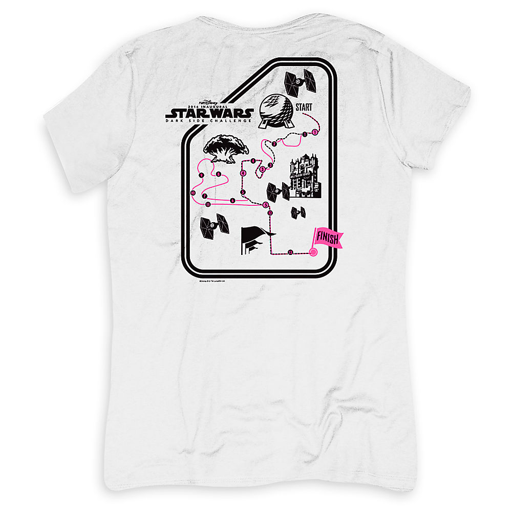 The Run Disney Star Wars Dark Side Half Marathon Weekend kicks off today at Walt Disney World, and the Disney Store has two women’s event t-shirts available in a limited release. The first t-shirt is white, and commemorates the Dark Side Challenge (completing the 10K and Half Marathon), with the course map on the back. The second t-shirt is blue, and commemorates the Dark Side Half Marathon, again with the course map on the back. Both t-shirts are priced at US$27.95 each, and are available in sizes S to XXL. These are limited release items, and are only available to order until Sunday April 24th 2016, so don’t wait if you want to order these. While Disney Store can ship internationally, these limited release items only ship within the US.