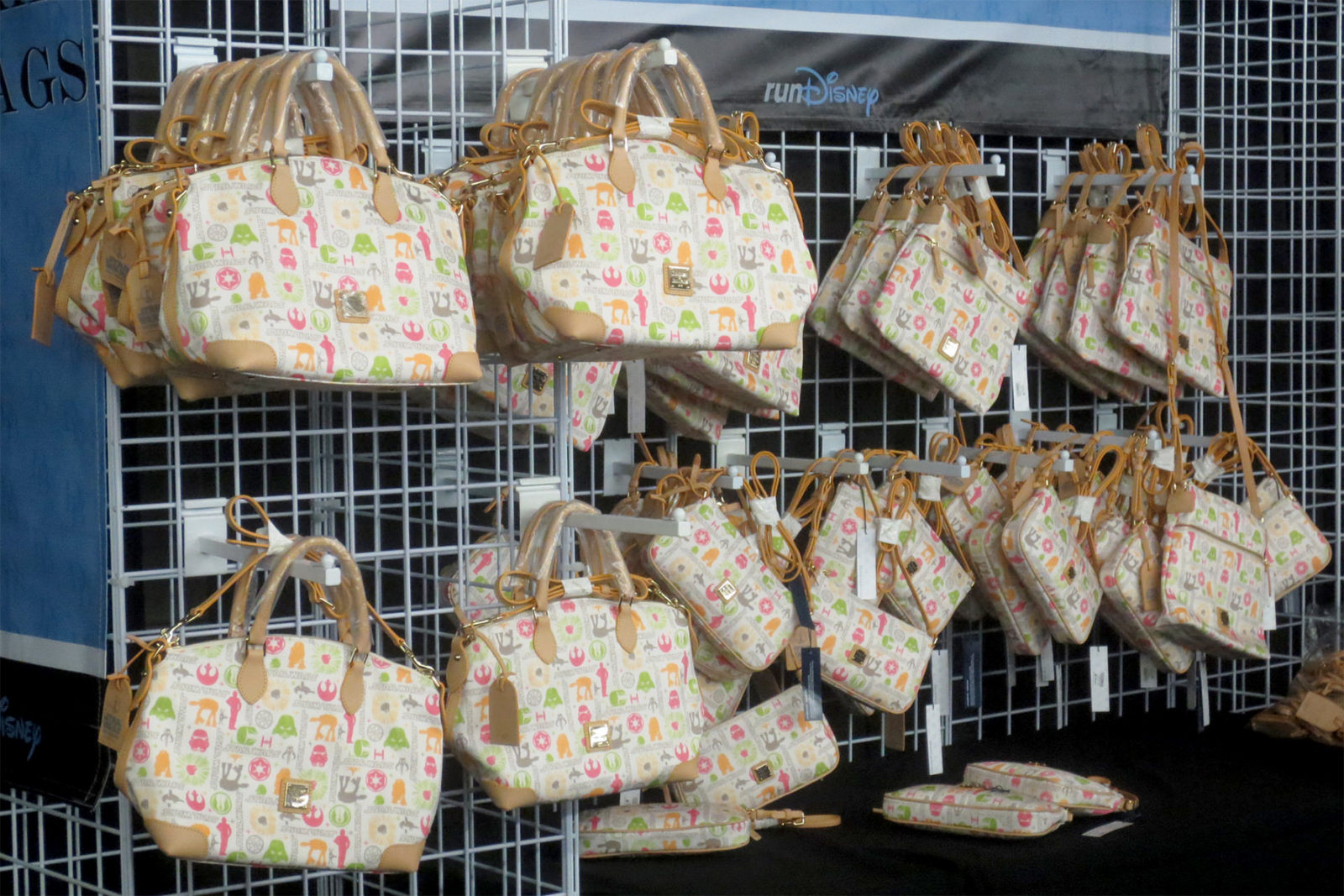 Left over stock went on sale at Disneyland/Downtown Disney shortly after the event – there are quite a few available on ebay at the moment, for those who are keen to pick one up. I am curious to see if this same print will used for handbags at the upcoming Star Wars Half Marathon event at Walt Disney World in April – perhaps a black background version for the ‘Dark Side Challenge’ theme, or perhaps three different handbag styles? In any case, I wish I had been able to buy one myself (expensive international travel unfortunately cut into my shopping budget), but it was fun to see these in person 🙂