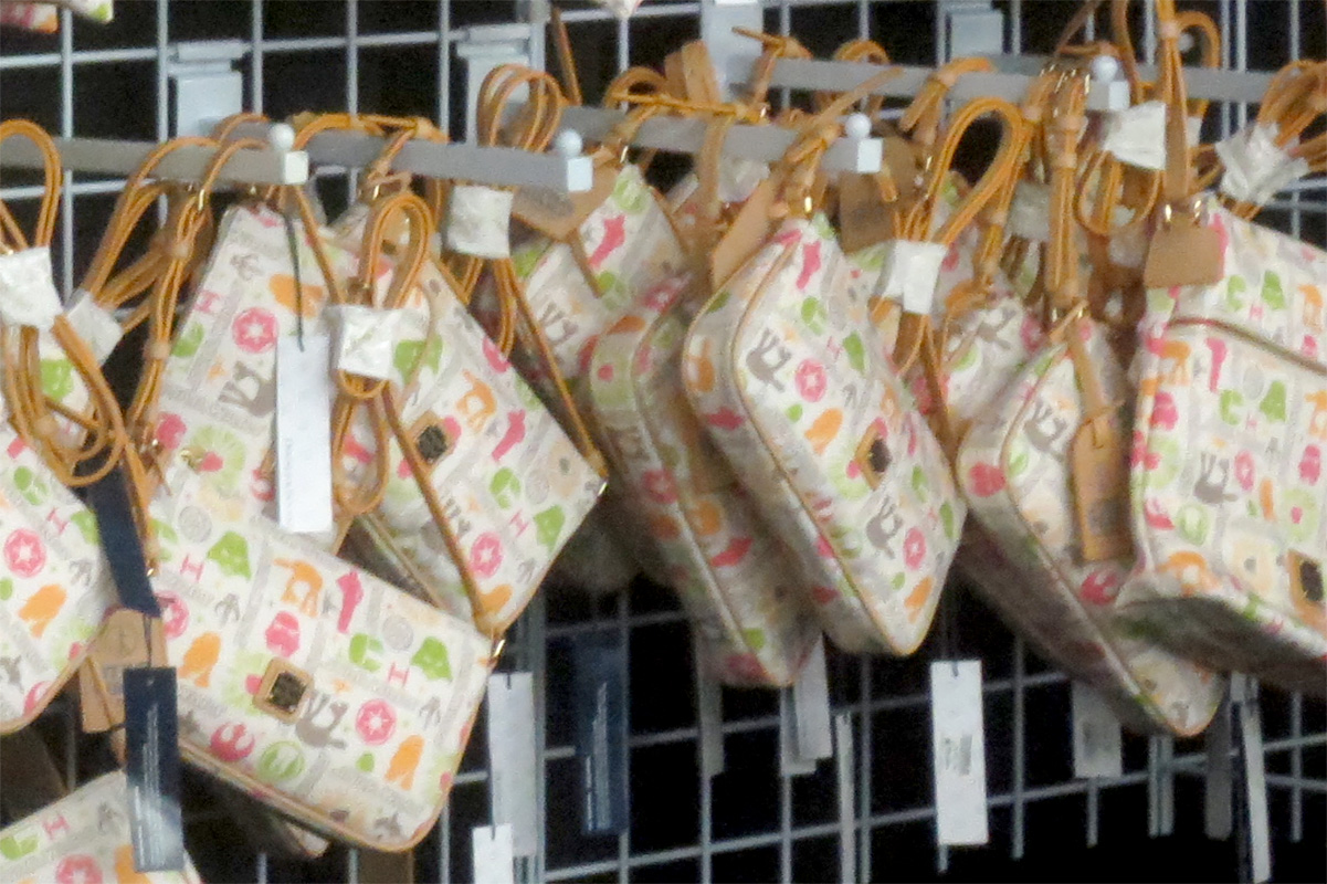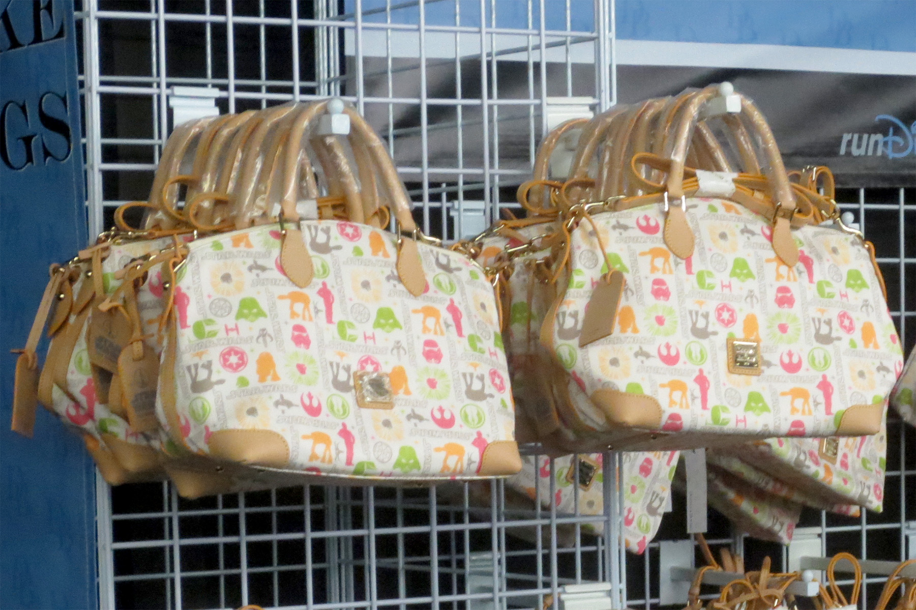 For the 2016 Run Disney Star Wars Half Marathon Weekend at Disneyland, Dooney & Bourke released a new range of Star Wars handbags. The new print features classic characters, symbols and vehicles in a fun colour scheme of pink, green and orange. I love the print – I wouldn’t have though the colour combination would work, but it does. The range includes three handbag styles – the satchel (largest), the letter carrier/crossbody (mid size), and the pouchette (smallest).