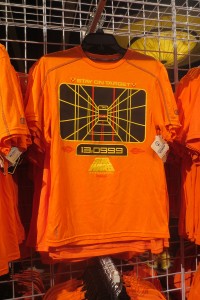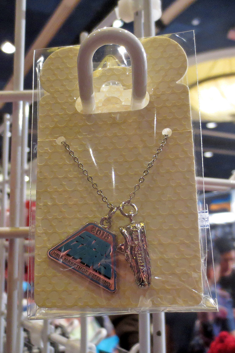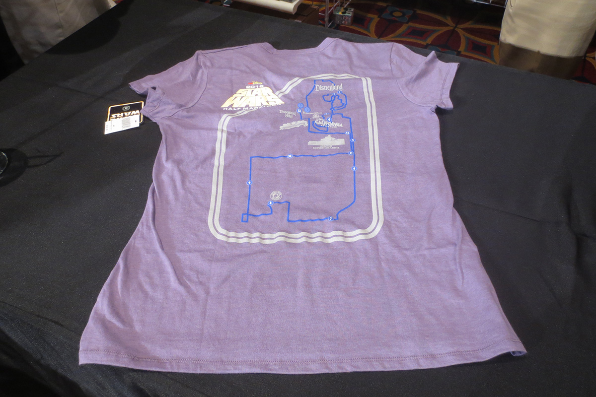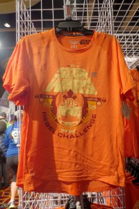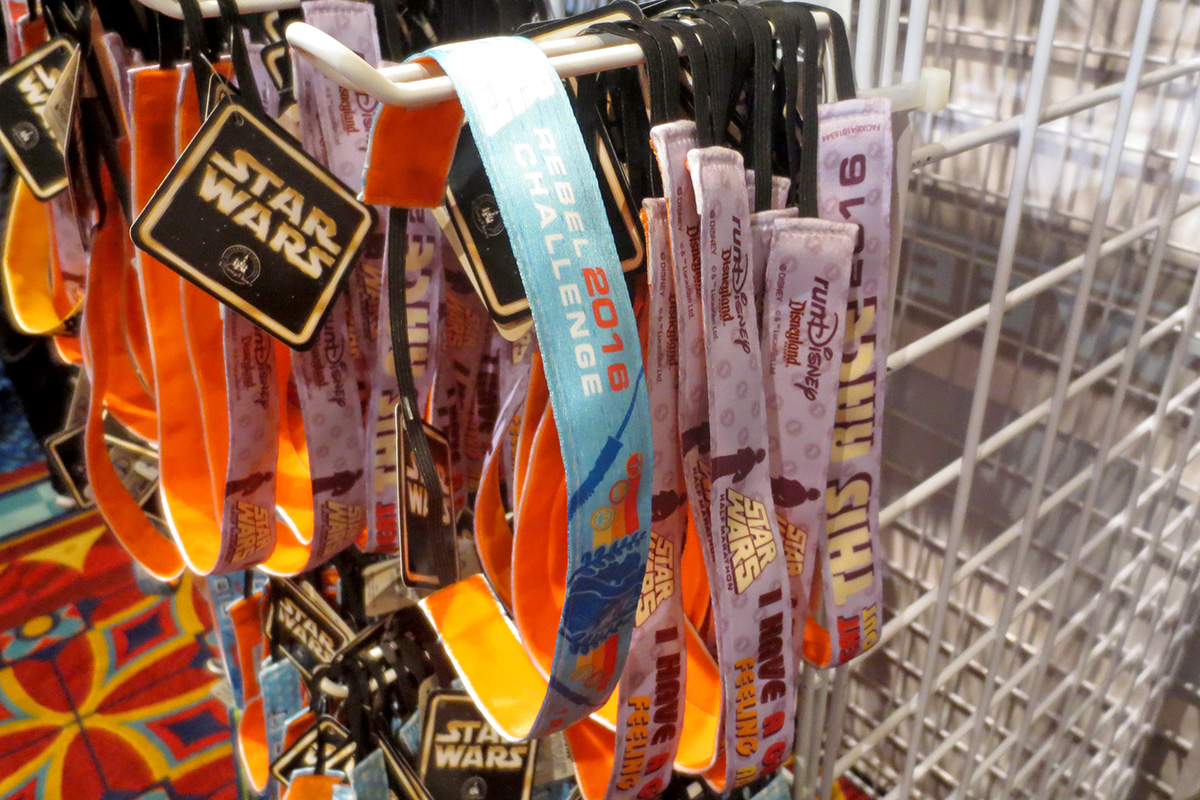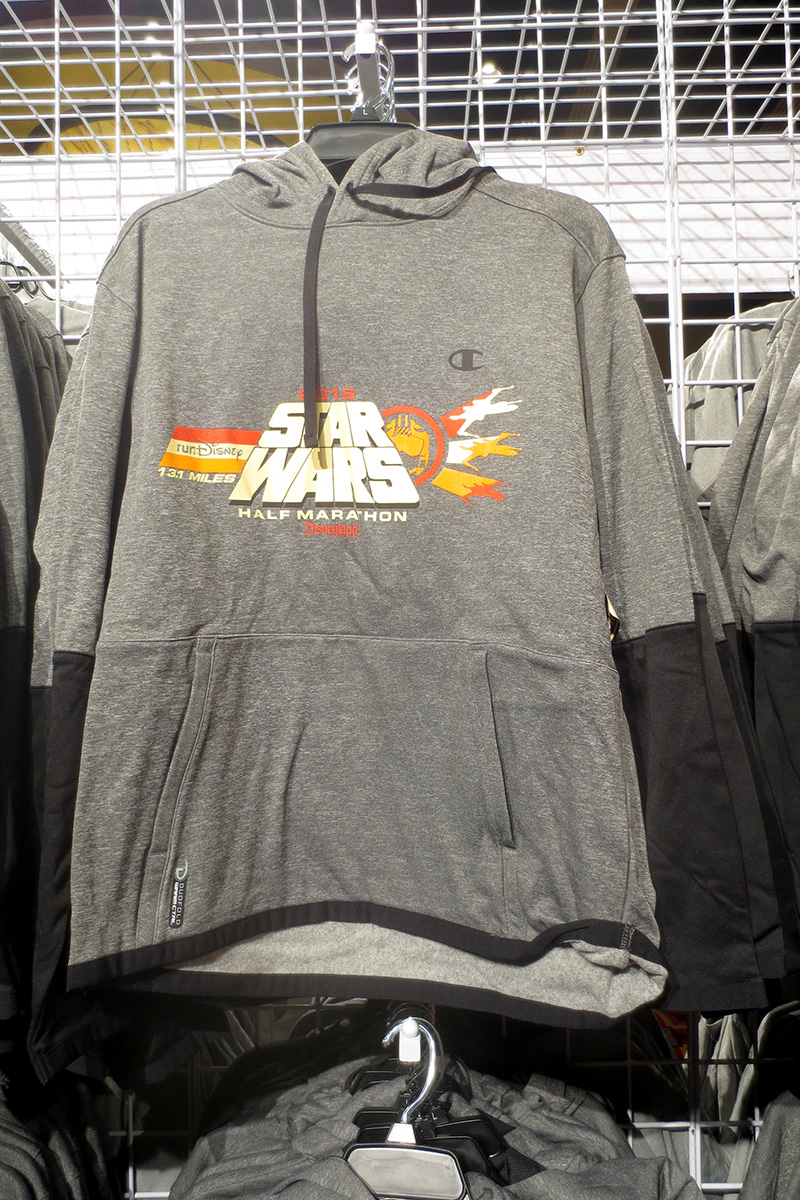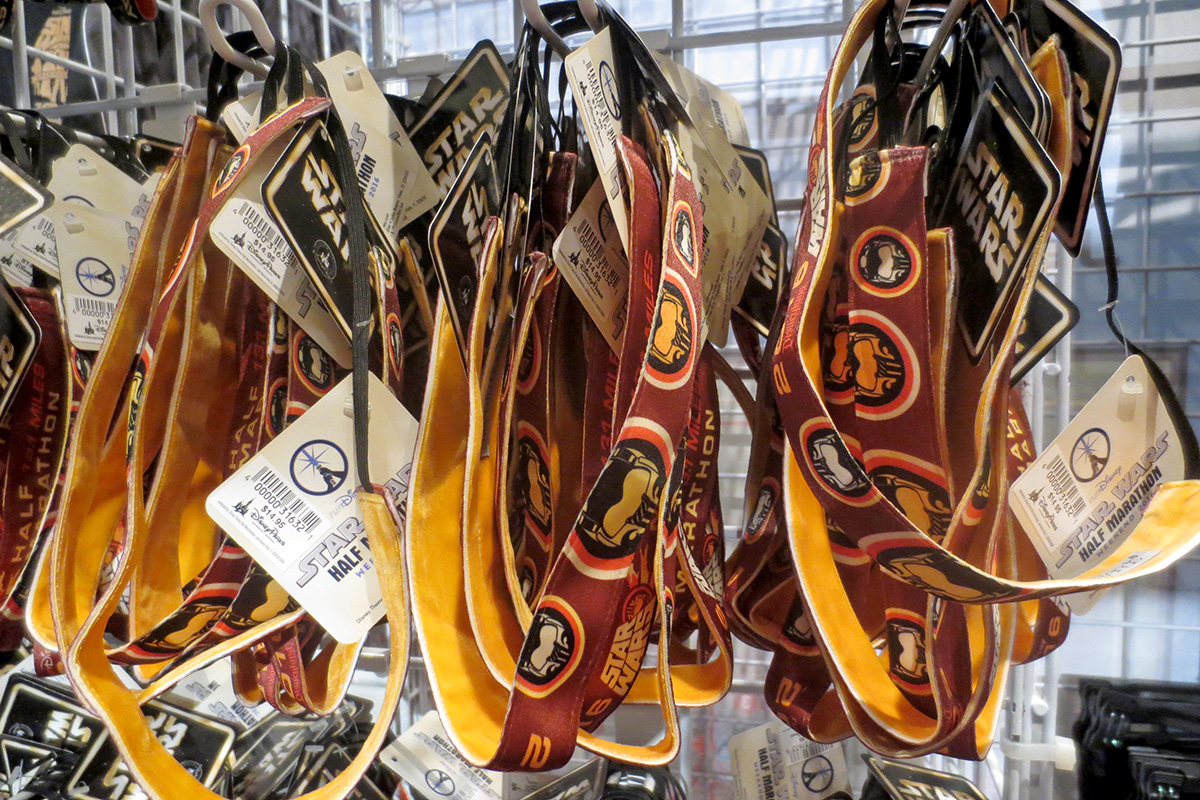 The 2016 Run Disney Star Wars Half Marathon Weekend at Disneyland started with an expo on Thursday 14th January, with a great collection of event merchandise available. The range included tank tops, t-shirts, long sleeve shirts, jackets, pants, headbands, hats, and a necklace (alongside other merchandise like collectible pins and mugs). Designs included general event designs, and also specific designs commemorating the Half Marathon and the Rebel Challenge. I very much prefer this year’s designs over the apparel available for last year’s event – personally, I felt both the garment colours and print designs were better for this year.