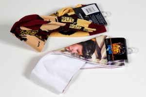 One pair features Slave Leia as seen in “His Vision Returns” by artist Chris Trevas (originally released as a limited edition art print available at Celebration VI), but the print is only on the front of the sock, the back is plain white. The second pair features a cross-stitch/pixel style picture of Slave Leia, which is part of the knitting, not printed on to the fabric like the first pair. These currently reside in my Slave Leia collection, so I haven’t cut the tags off and tested them out yet, but I hope to pick an extra pair or two for wearing too!