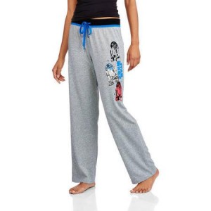 Walmart has women’s Star Wars sleep pants available (made by Richard Leeds International), in three styles – ‘Desert Peach’, ‘Black Soot’, and ‘Light Heather Grey’. The first two feature different styles of repeating print, while the third features R2-D2 in a design on the left leg. Priced at US$9.97 each, the sleep pants are available in sizes S to 3X. Walmart does not ship outside the US, but their customer service FAQ does indicate overseas customers can place orders to be sent to a US mailing address (so it appears you can use a mail forwarding company).