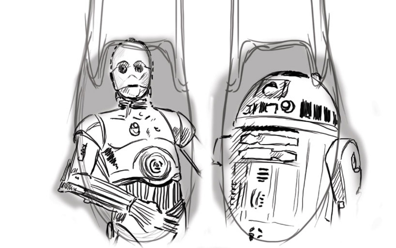 Speaking of the droids, some of the shoes in the collection have a “buddy” theme. What is it about friendships in the film that inspired you to create the side-by-side buddy pack shoes?