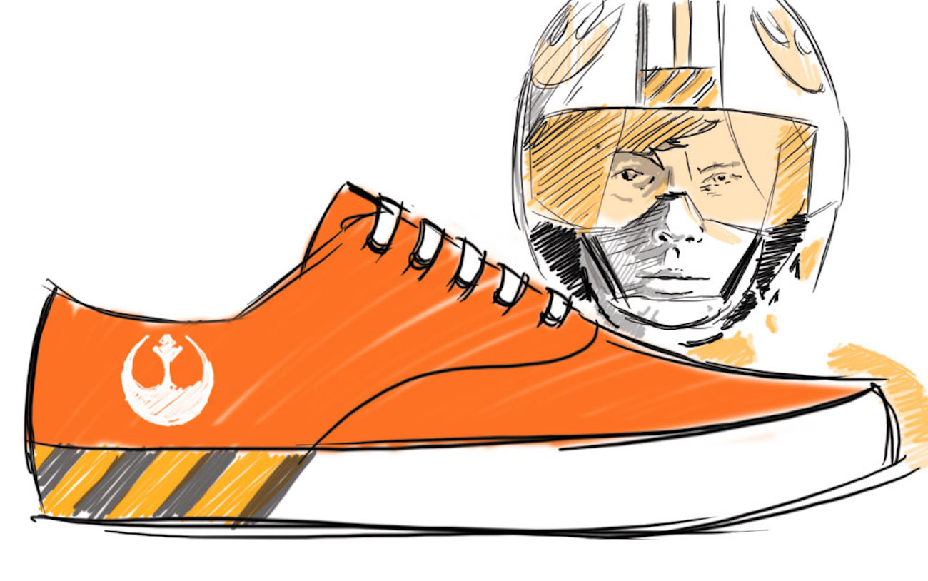 Knowing that you’re a fan of the Rebellion, it’s not shocking that you took some really cool elements of the X-Wing™ and Luke’s jumpsuit and incorporated the designs into one of these shoes. Tell us more about it!
