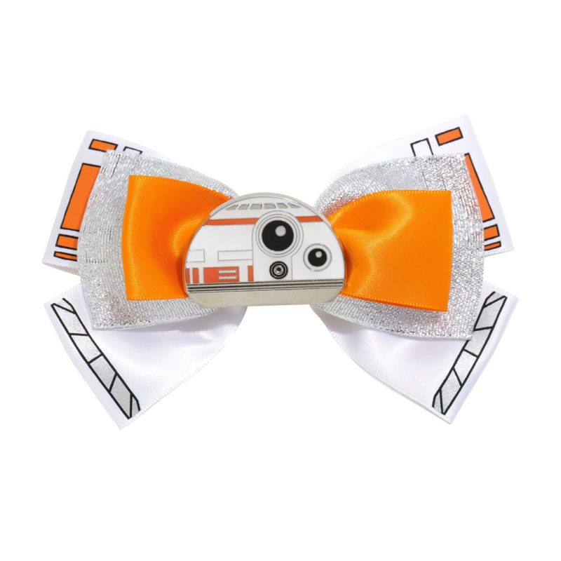 Add the finishing touch to your BB-8 themed outfit with a cute hair bow from Hot Topic! There are three cute design to choose from – a cheerleader style bow with an all-over print, a cosplay style BB-8 bow, and a cosplay style bow with metal BB-8 charm.