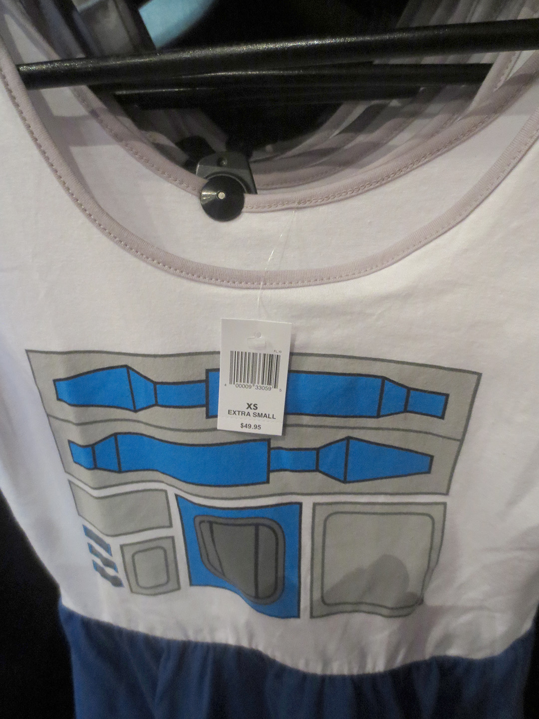 Something I noticed on my last visit to Downtown Disney were two dresses – made by Her Universe! I hadn’t heard about these before, and didn’t remember seeing them on my first visit a few days earlier. Then Her Universe posted on Facebook about new designs showing up at the park, so they were indeed brand new! While similar to earlier Her Universe dresses, these are sleeved versions of the R2-D2 and Darth Vader skater dresses. Exclusive to Disney Parks, I found these at Downtown Disney in the D Street store. They were priced at US$49.95 each, I love the heart on the sleeve on the R2-D2 dress!