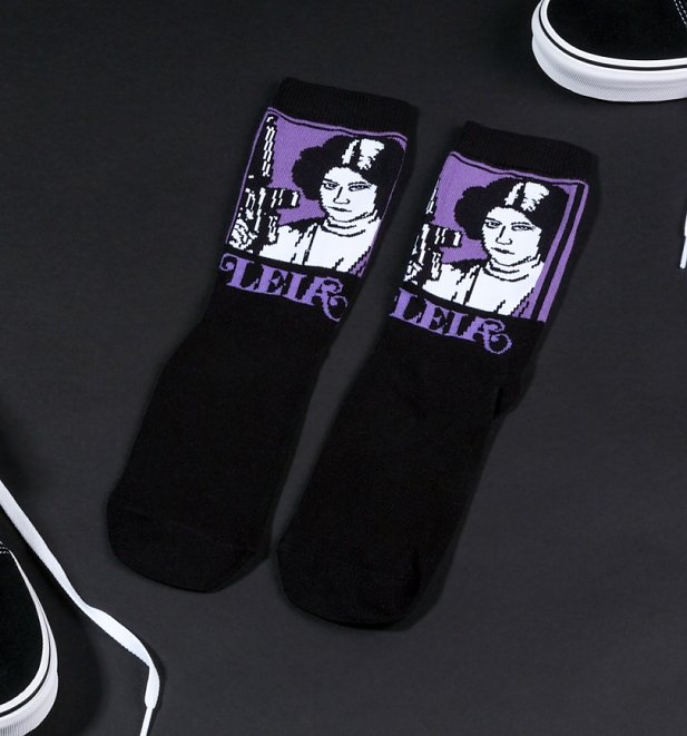 These Star Wars Princess Leia socks are available at TruffleShuffle. Made from 59% cotton, 39% nylon and 2% elastane, the black socks feature a knitted image of Princess Leia, with the text ‘Leia’ underneath.