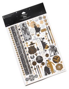 It looks like the Love And Madness x Star Wars range is already arriving at Thinkgeek! Two styles of Love And Madness x Star Wars temporary tattoo sets are now available from Thinkgeek. These are more ‘body art’ than the temporary tattoos we are familiar with from childhood – with gorgeous metallic colours and a huge variety of designs, there are so many ways to style this with an outfit. You can wear them on your skin, or apply them to your nails with a topcoat of clear polish! The sets currently available at Thinkgeek come in two choices – metallic tattoos (two pages) for US$19.99, or one page of holographic metallic tattoos for US$9.99 – Thinkgeek can ship internationally!