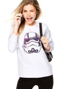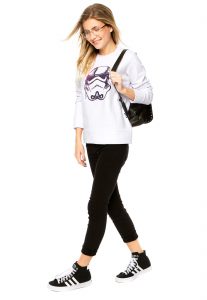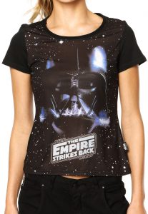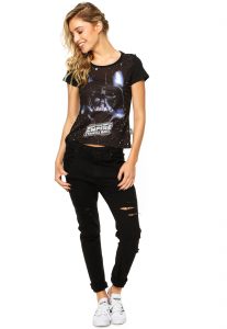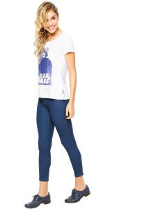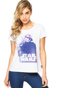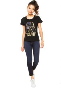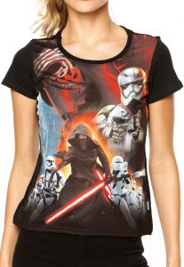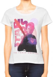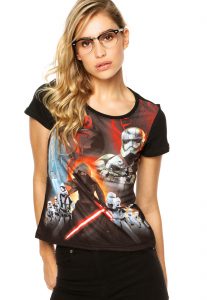 The Brazilian website Dafiti has just added a great new range of women’s Star Wars tops made by Malwee. I haven’t come across this brand before – it’s great to see more international companies producing licensed women’s Star Wars apparel. The range currently includes 12 items – 10 t-shirts, and 2 long sleeve tops, with designs including The Force Awakens characters, Star Wars logos, and Darth Vader. Prices range from R$49.90 each (approximately US$13.99 each) to R$99.90 each (approximately US$28.00 each). The tops are available in Brazilian sizes P, M, G, and GG, which converts to US XS to L – some styles are currently out of stock in some sizes. It appears that Dafiti only ships within Brazil, but some of these prints are available from other apparel brands (like the Captain Phasma tee from Her Universe).